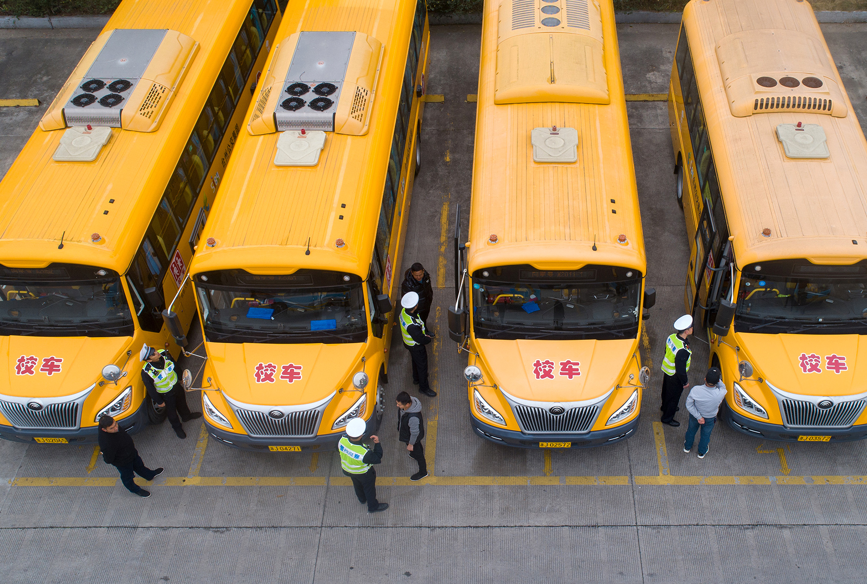 开学在即,浙江省台州市公安局交警直属二大队组织警力对校车开展了集中大“体检”,保障新学期学生乘车安全。