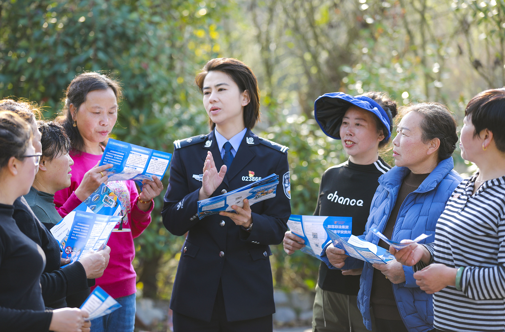 2月21日,贵州省黔西市公安局经济犯罪侦查大队民警在水西街道幸福社区向居民宣传防范非法集资知识。