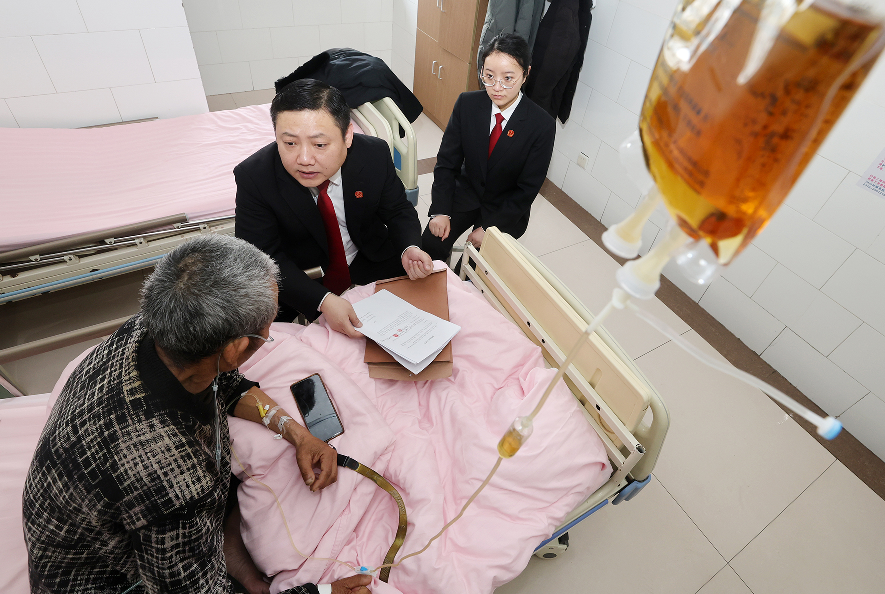 2月28日,河南省安阳县人民法院组织立案庭干警走进医院病房内,为年近七旬的李老汉办理了执行立案手续。