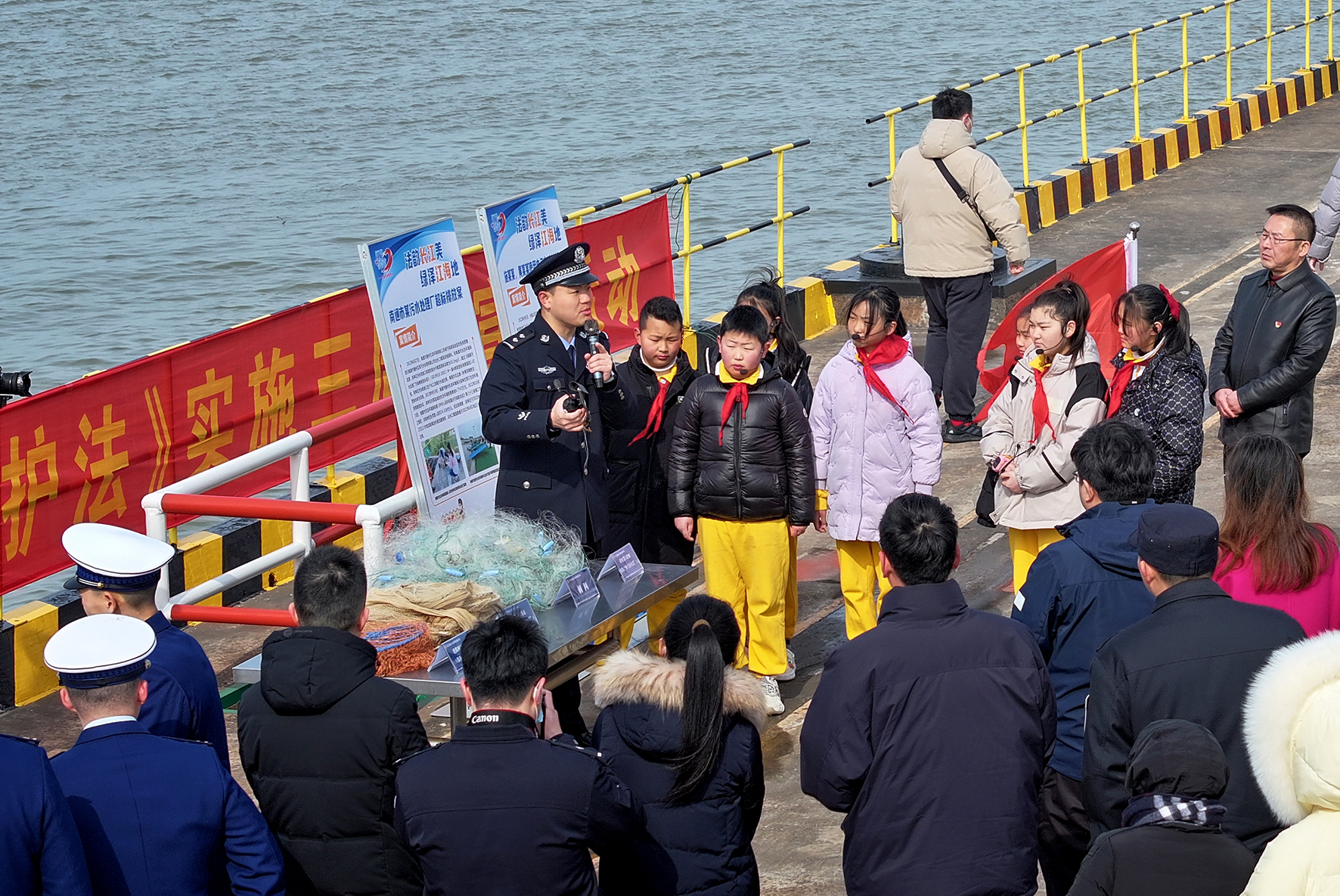 3月1日,“法韵长江美 绿泽江海地”——《中华人民共和国长江保护法》实施三周年宣传暨沿江网格大支部生态护江共建活动在长江航运公安局南通分局警备码头举行。