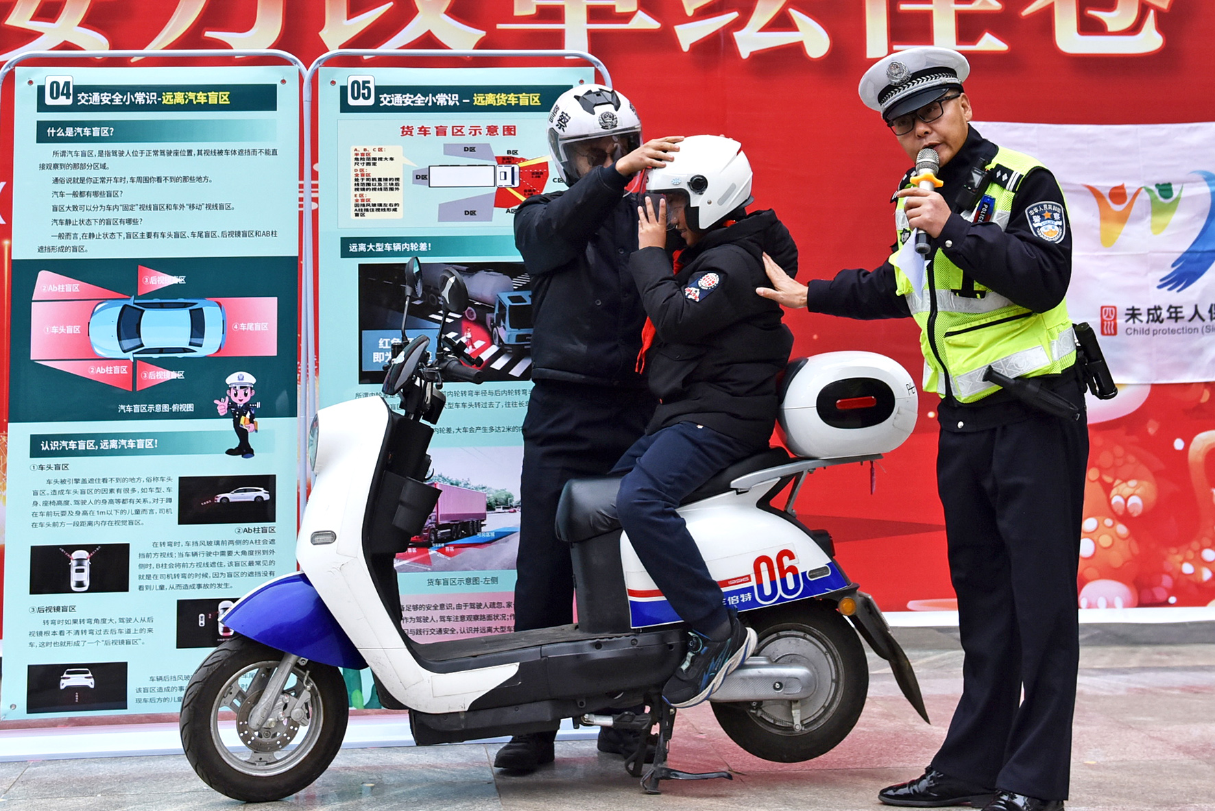 3月6日,四川省绵阳市公安局交警支队直属一大队民警走进辖区小学开展交通安全主题宣传活动,通过现场情景模拟和宣传展板向同学们讲解“一盔一带”、车辆盲区等安全常识,进一步增强小学生的交通安全意识。