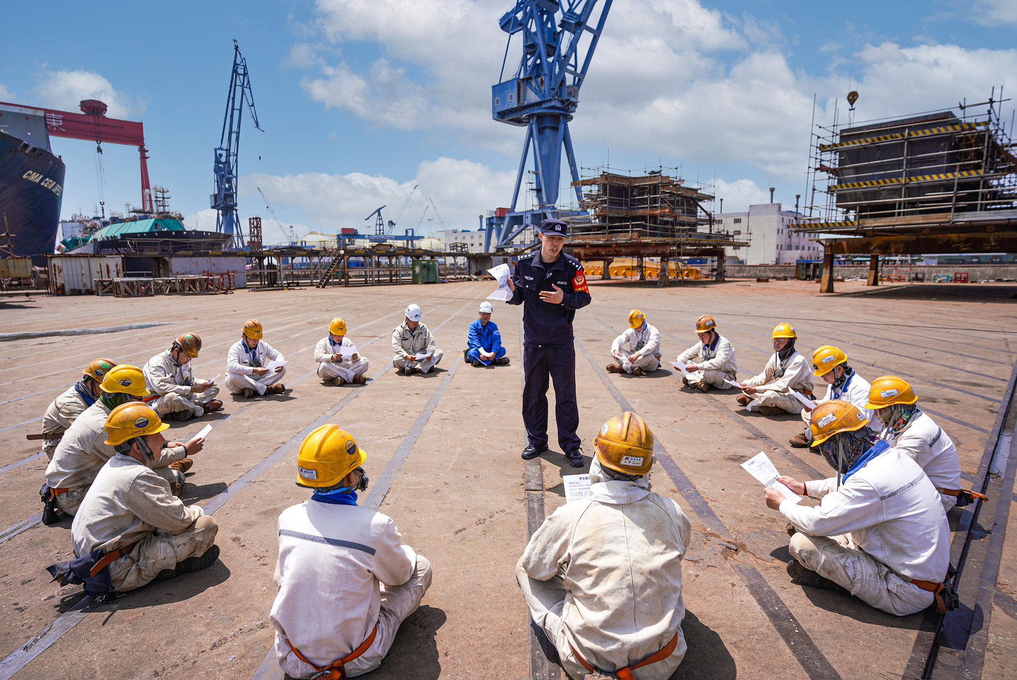 3月11日,上海市公安局崇明分局城桥派出所民警来到辖区船厂开展警企协作和反诈宣传。