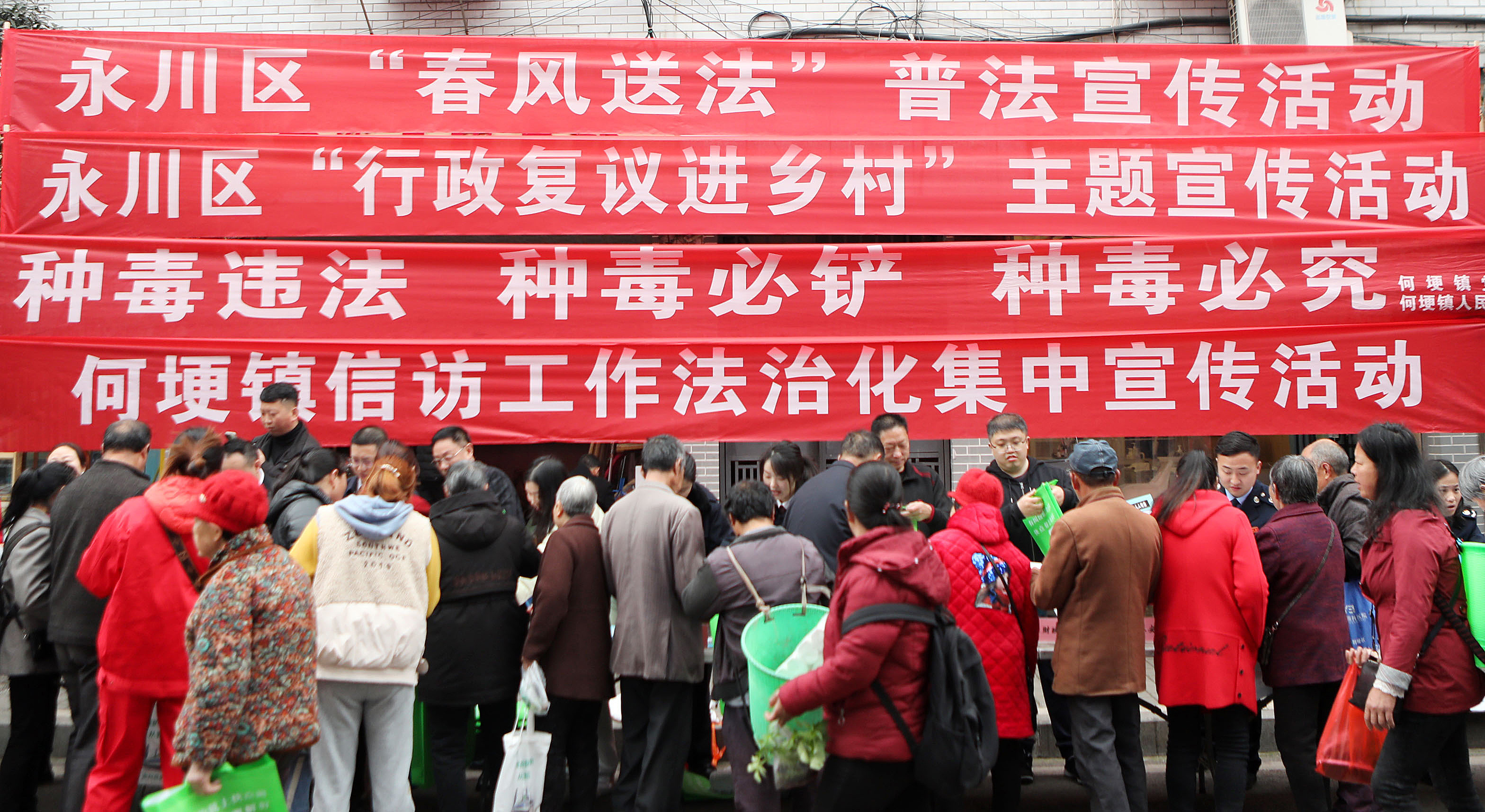 3月13日,重庆市永川区普法办会同区委政法委、区法院、区检察院、区公安局、区司法局、区农业农村委等12家单位,走进何埂镇开展“春风送法 催耕护种”法治宣传活动。