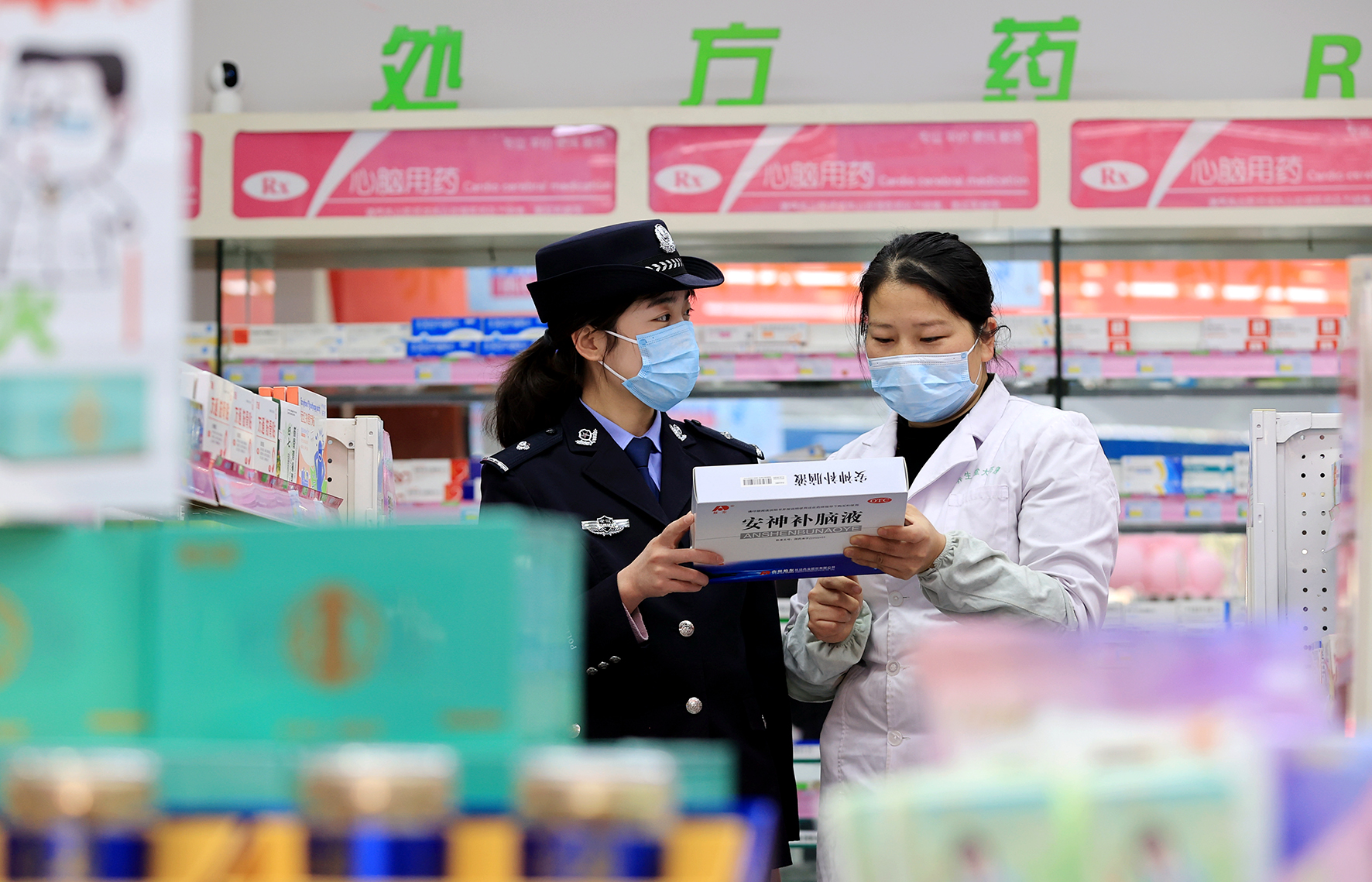 3月13日,安徽省淮北市公安局相山分局南黎派出所和食药环侦查大队民警在超市、药店等场所进行食品药品检查。