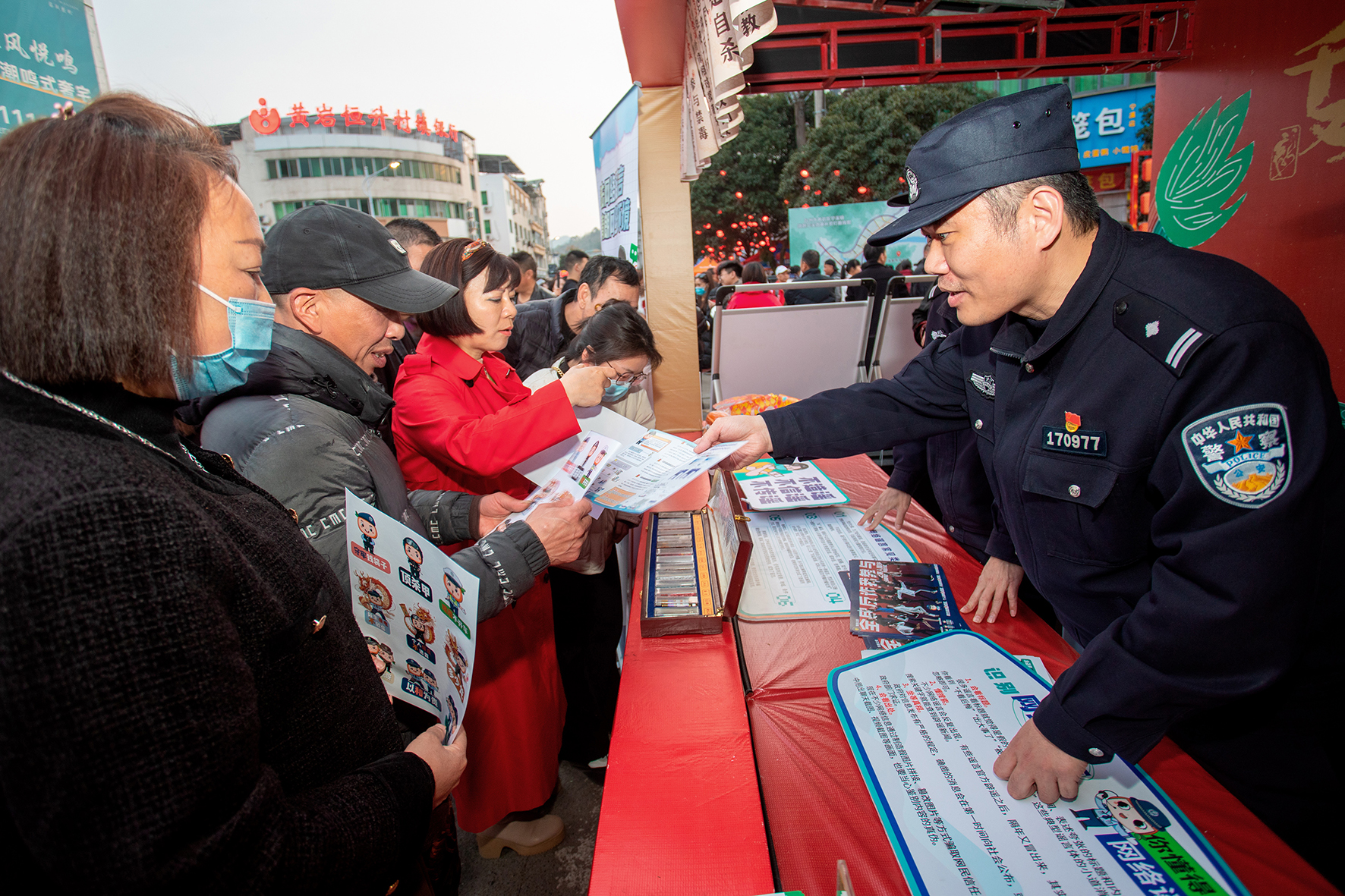 3月13日,浙江省台州市公安局黄岩分局借宁溪镇举办“二月二”灯会之际,在集市上设立宣传摊点,开展禁毒和安全防范宣传活动。