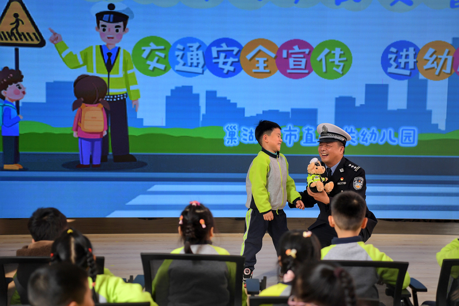 3月15日,安徽省巢湖市公安局交警大队民警走进市直机关幼儿园,为小朋友们讲解道路交通安全知识。