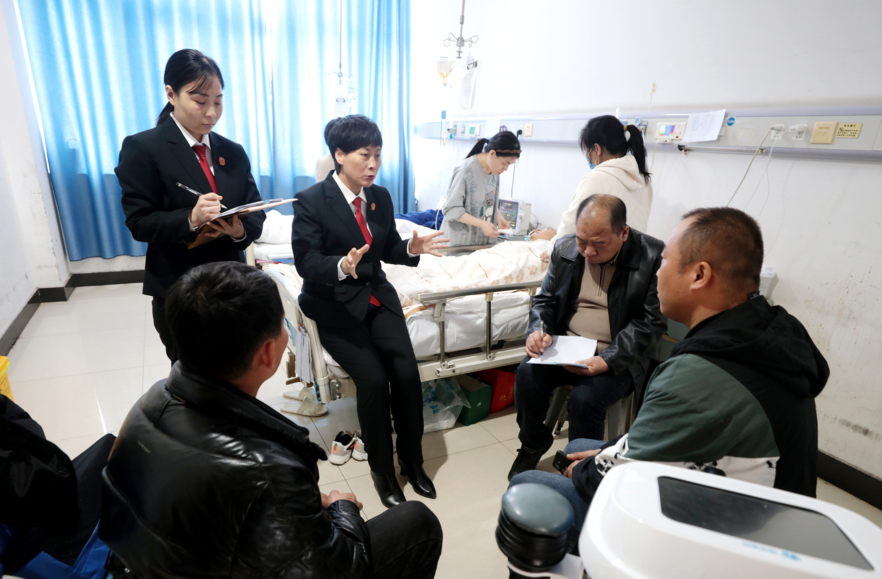 3月15日,河南省安阳县人民法院白璧法庭法官与人民调解员走进医院病房,对一起提供劳务者受害责任纠纷案进行现场调解。经过不懈努力,最终促使双方当事人达成了一次性赔偿85万元的调解协议。