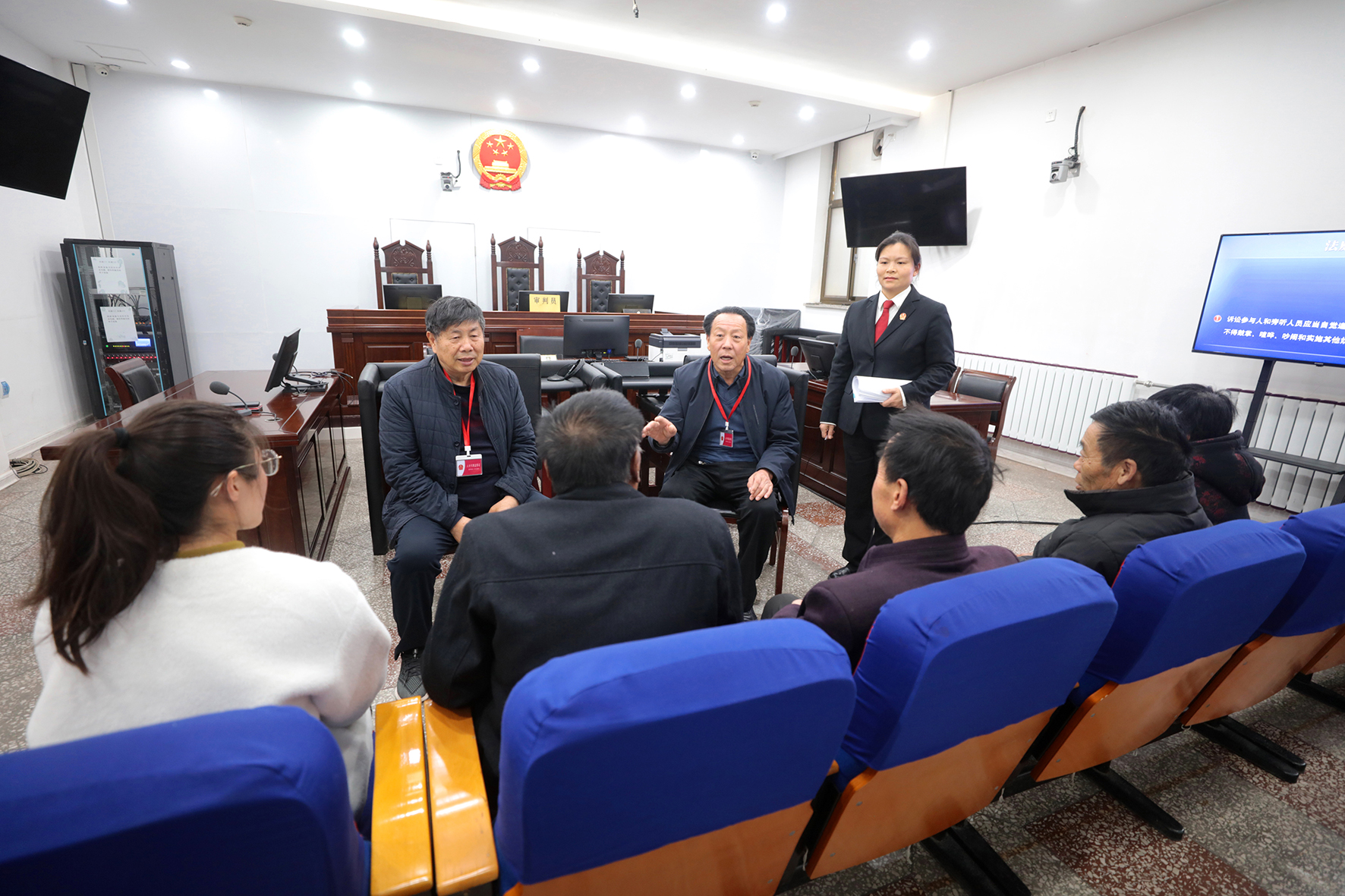 3月13日,河南省安阳县人民法院法官邀请市、县人大代表到审判庭参与案件调解。