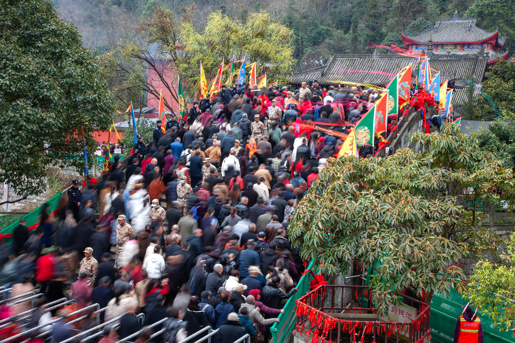 3月15日,四川省绵阳市安州区雎水太平桥开展春社“踩桥”大型民俗活动。绵阳公安为确保“踩桥”活动安全,出动1390余名警力,全力维护着现场秩序,守护平安。