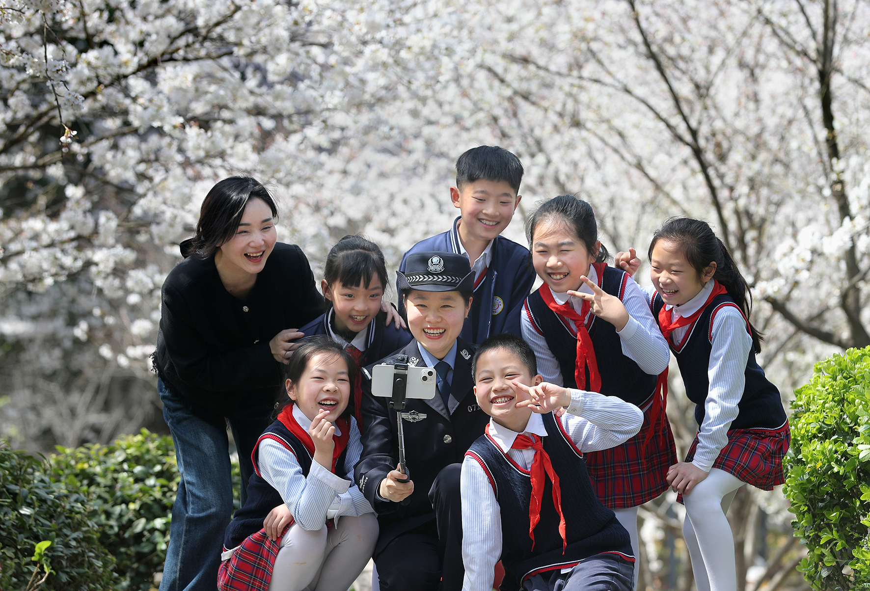 春分时节,赏花踏青。3月20日,在湖北省荆门市象山景区,荆门市公安局东宝分局泉口派出所民警带着留守儿童踏春郊游,感受春天的温暖气息。