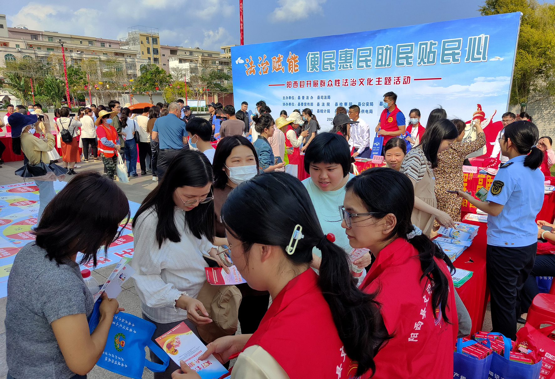 3月25日,由广东省阳西县普法办、阳西县司法局主办,县委宣传部、县法院、县检察院、县公安局、县工信局、县统计局、县红十字会、县供电局、县侨联等协办,以“便民惠民助民贴民心”为主题的群众性法治文化活动在阳西法治广场法律驿站举行,民法典宣讲、法律咨询、法律知识有奖问答等活动受到群众欢迎,场面“火爆”。