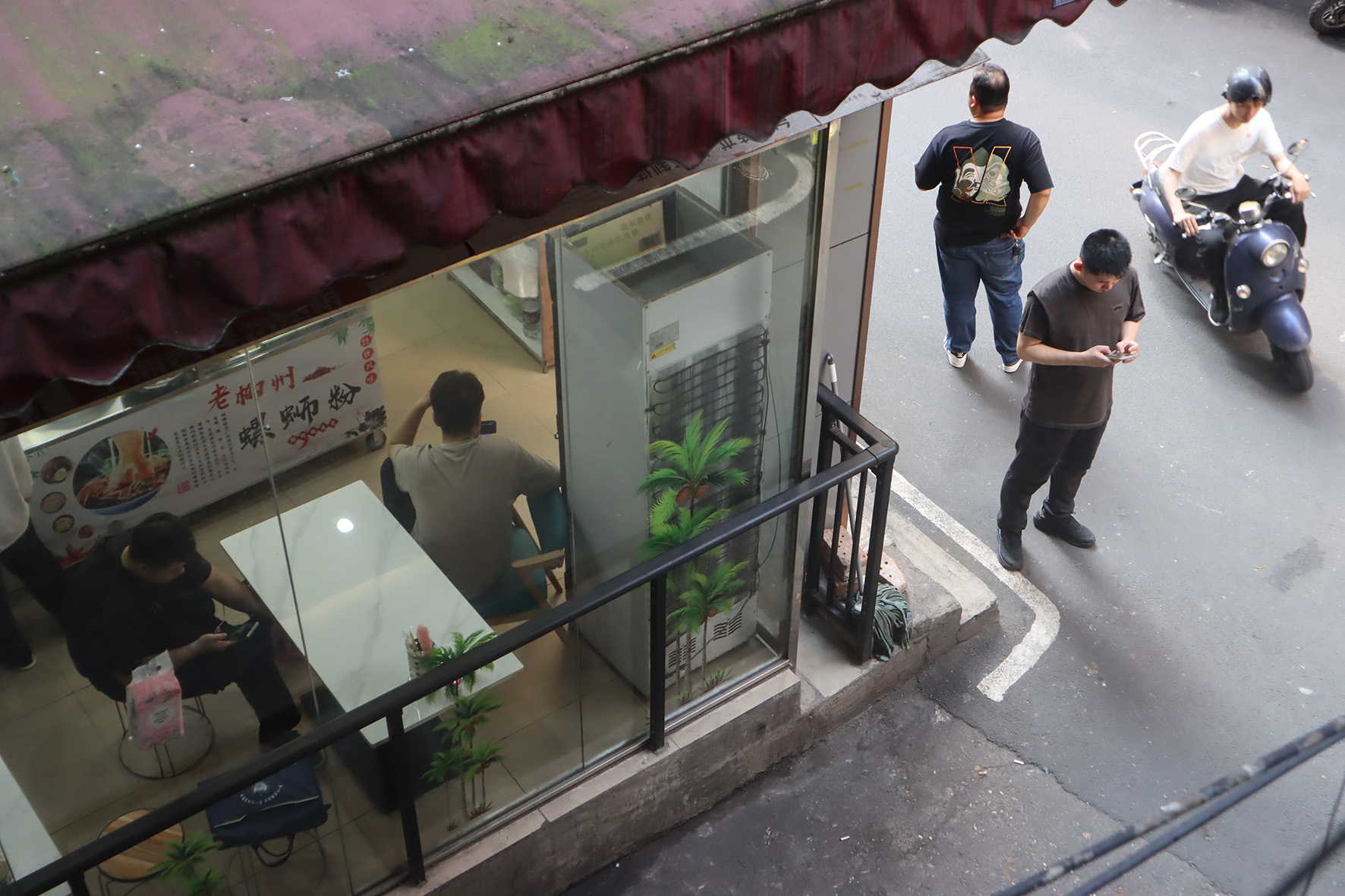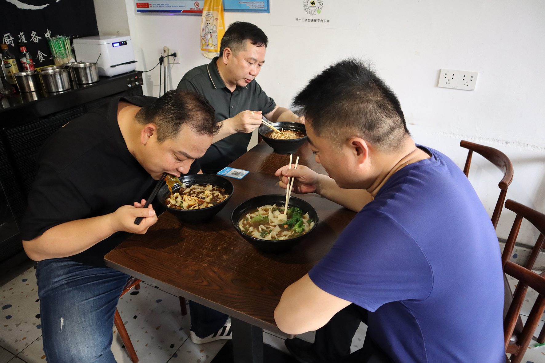 3月25日,市中区分局与广西南宁警方办案民警在蹲点守候期间轮流吃饭。