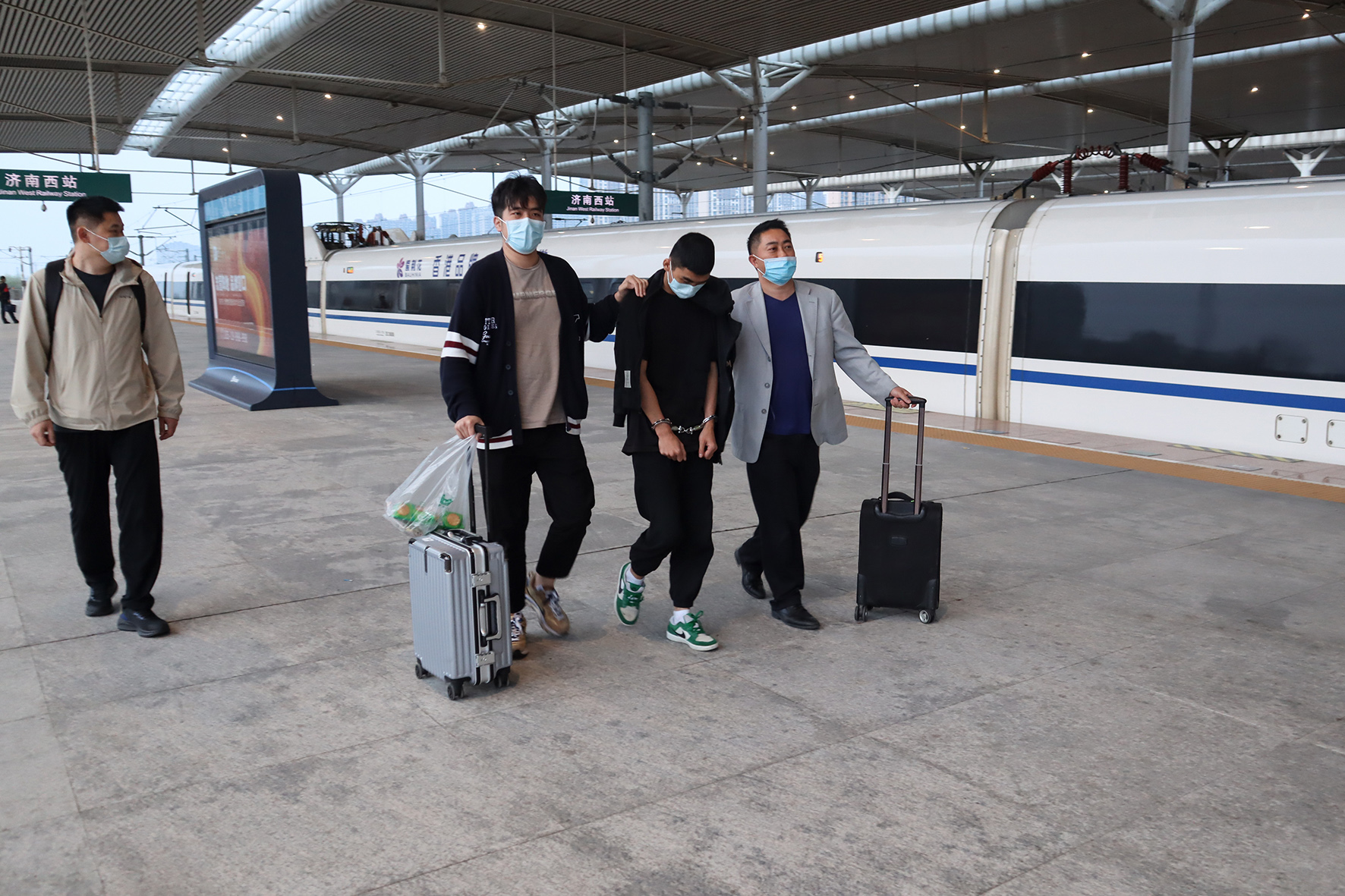 3月27日18时21分,从广西南宁开往山东济南的G436次高铁缓缓驶进济南西站,济南市公安局市中区分局办案民警将网上诈骗43000余元的犯罪嫌疑人张某押下车。自此,一场持续三天的抓捕行动圆满结束。