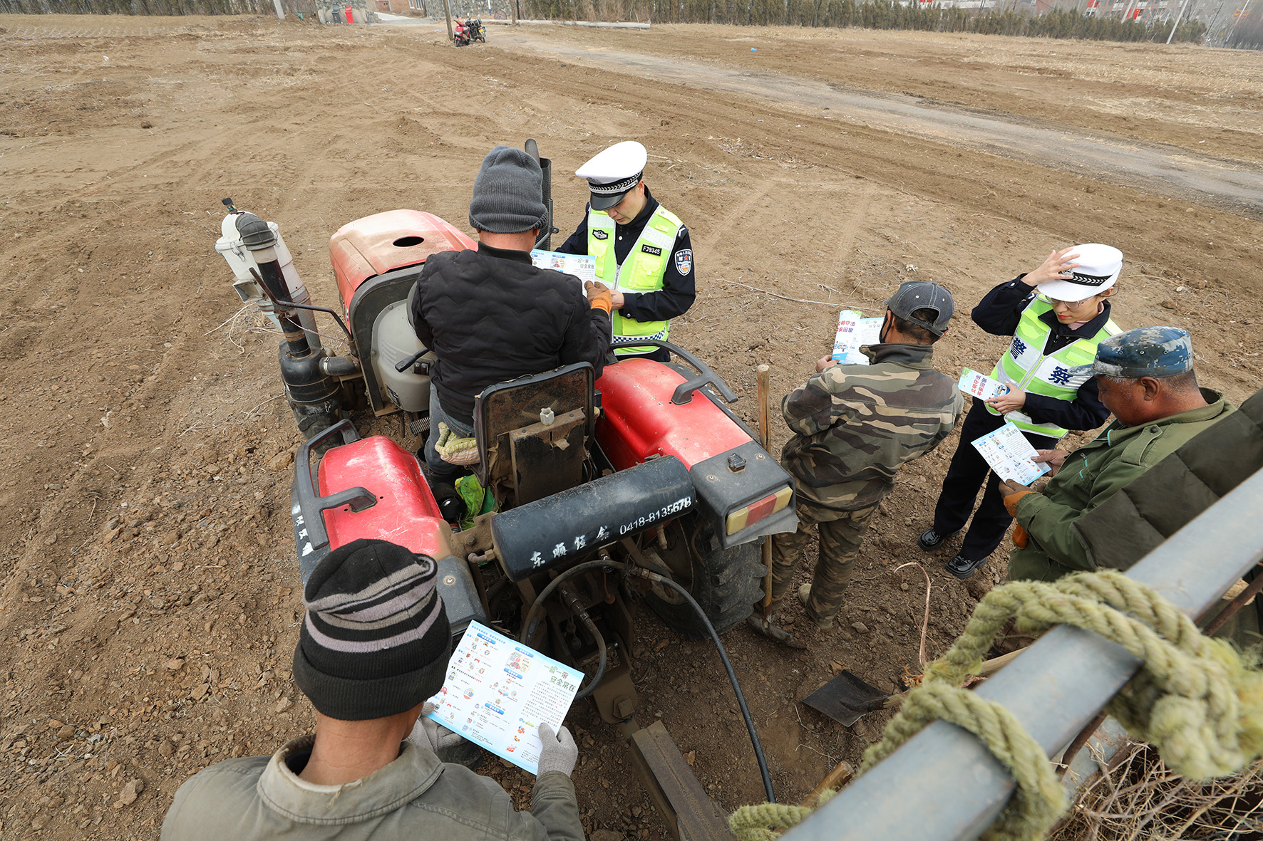 3月27日,辽宁省阜新市公安局交通警察支队细河大队民警走进田间地头,针对性地开展交通安全知识宣传活动。