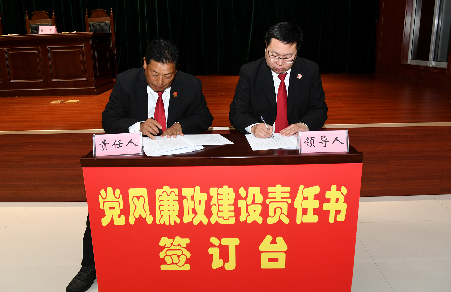 4月7日,在安徽省宿州市埇桥区人民法院党风廉政建设会议上,班子成员在签订党风廉政建设目标责任书。