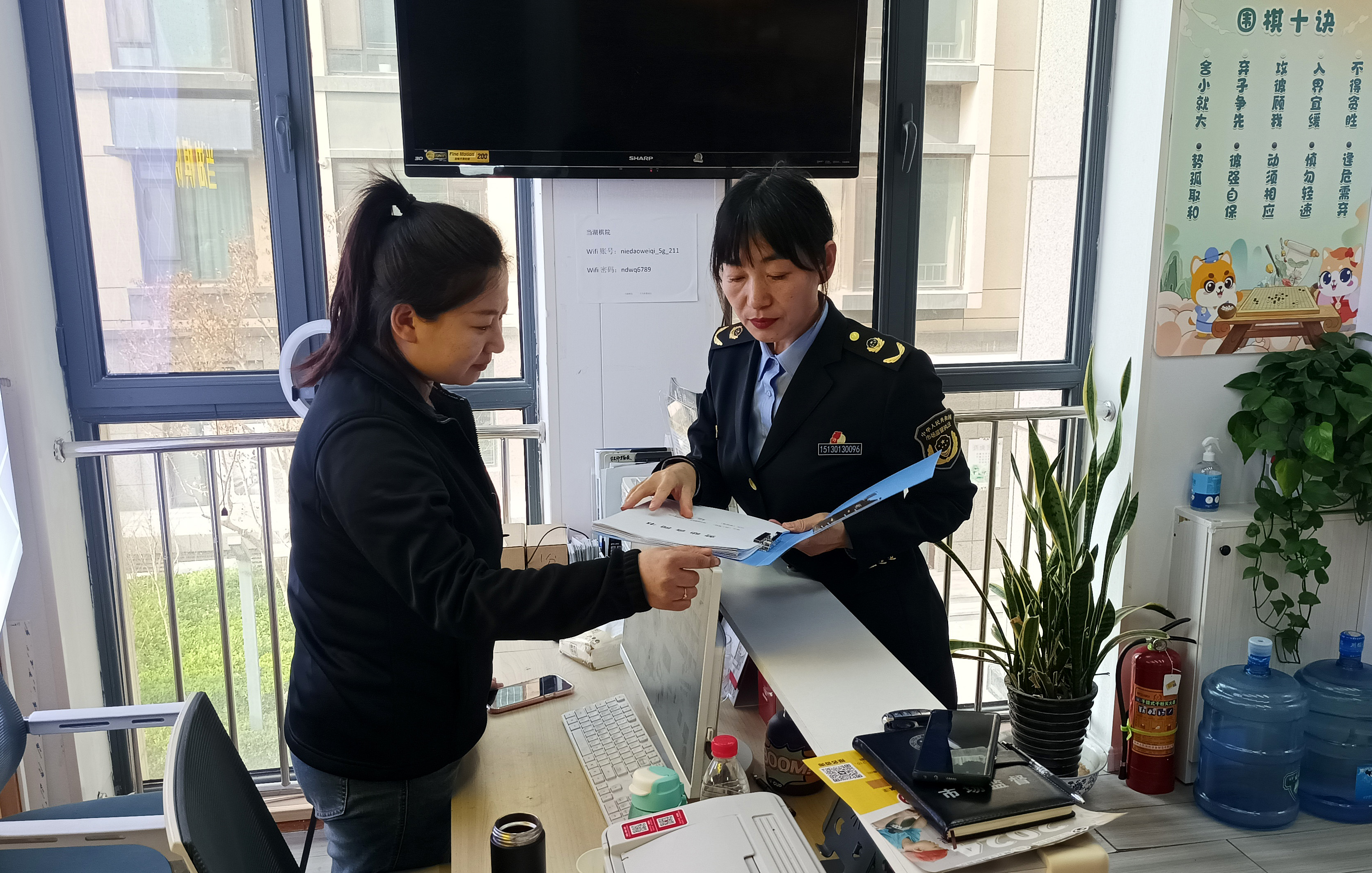 图为执法人员走进商户检查格式合同内容及使用情况。