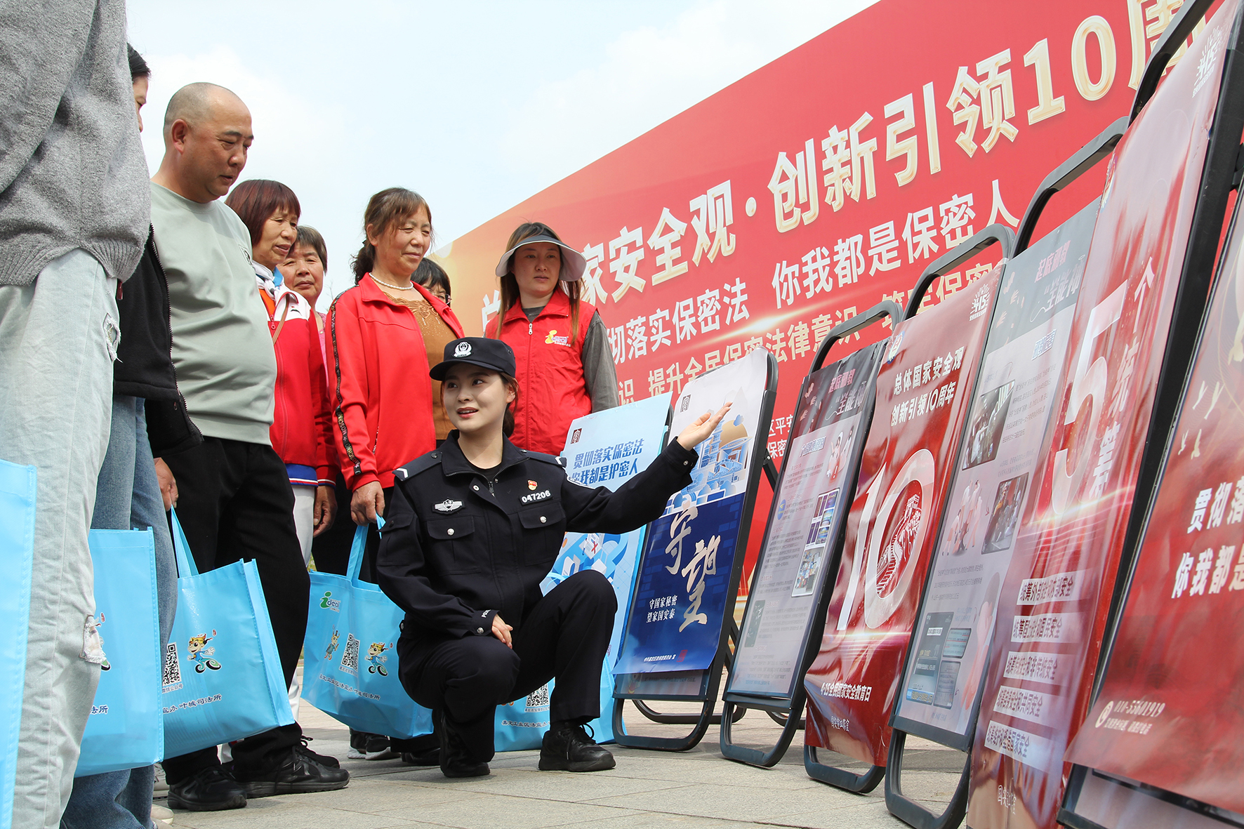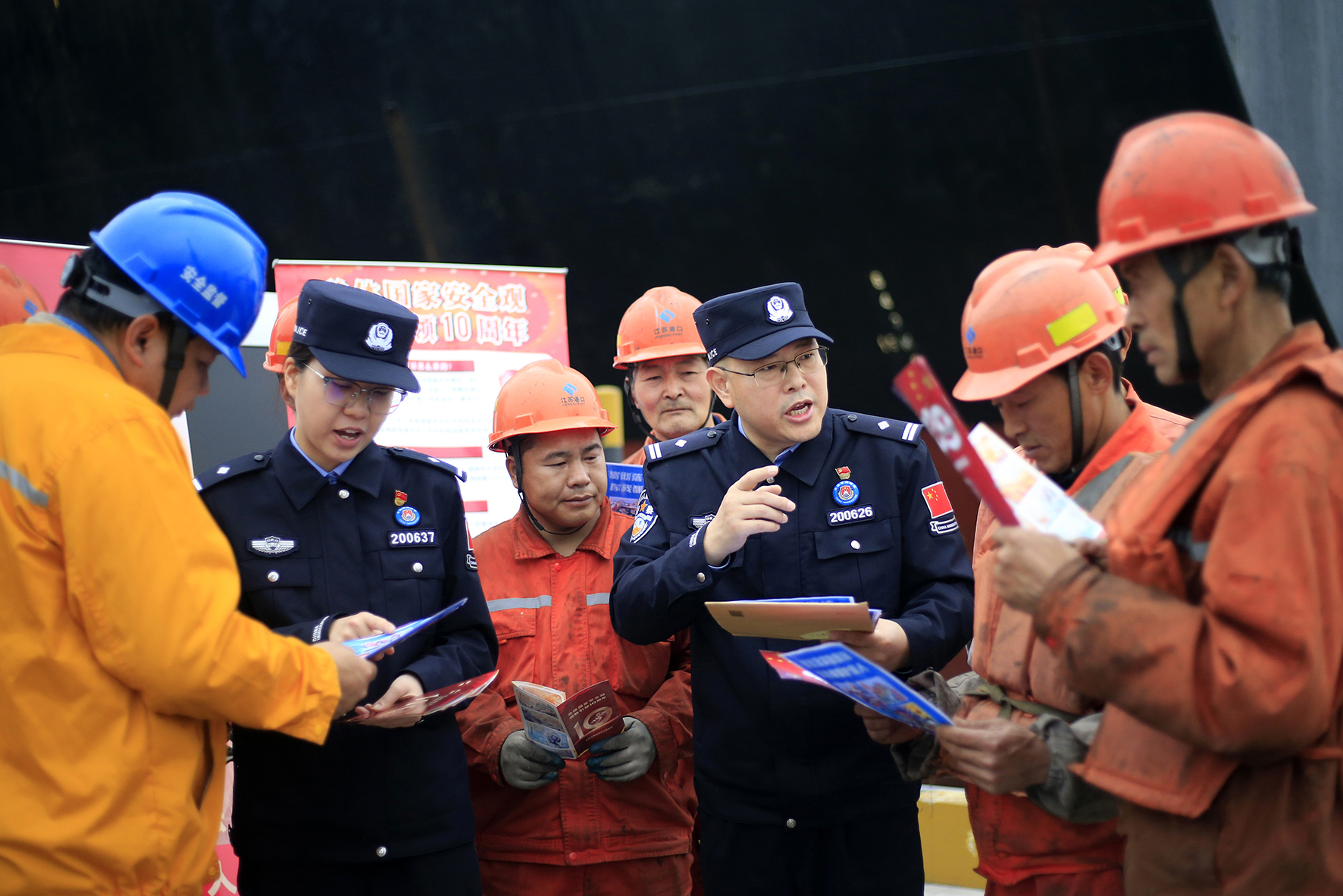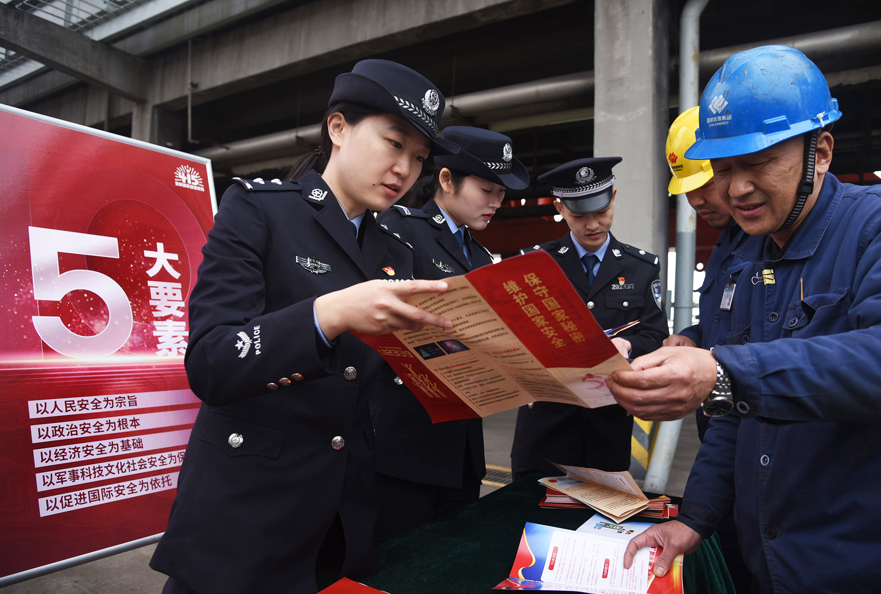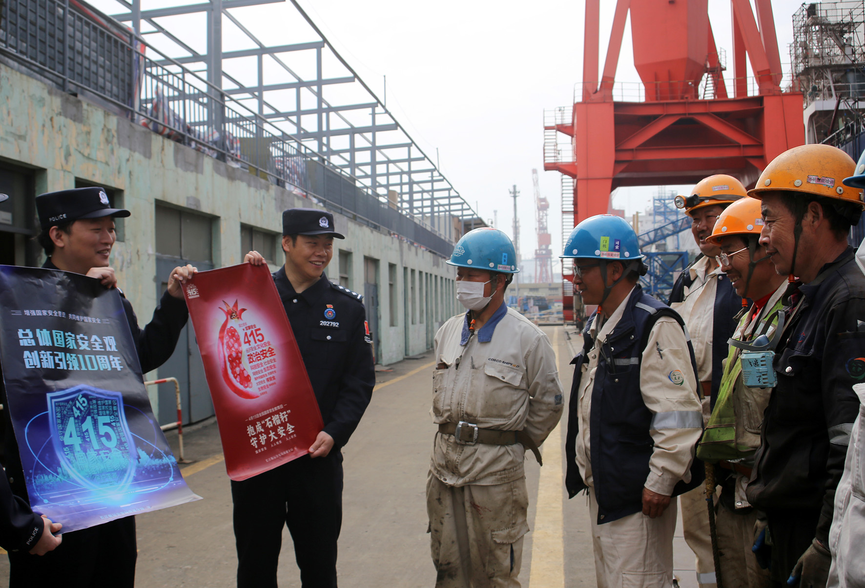 4月12日,在第九个全民国家安全教育日前夕,江苏南京港出入境边防检查站组织民警深入口岸一线开展“总体国家安全观 创新引领10周年”为主题的宣传活动。