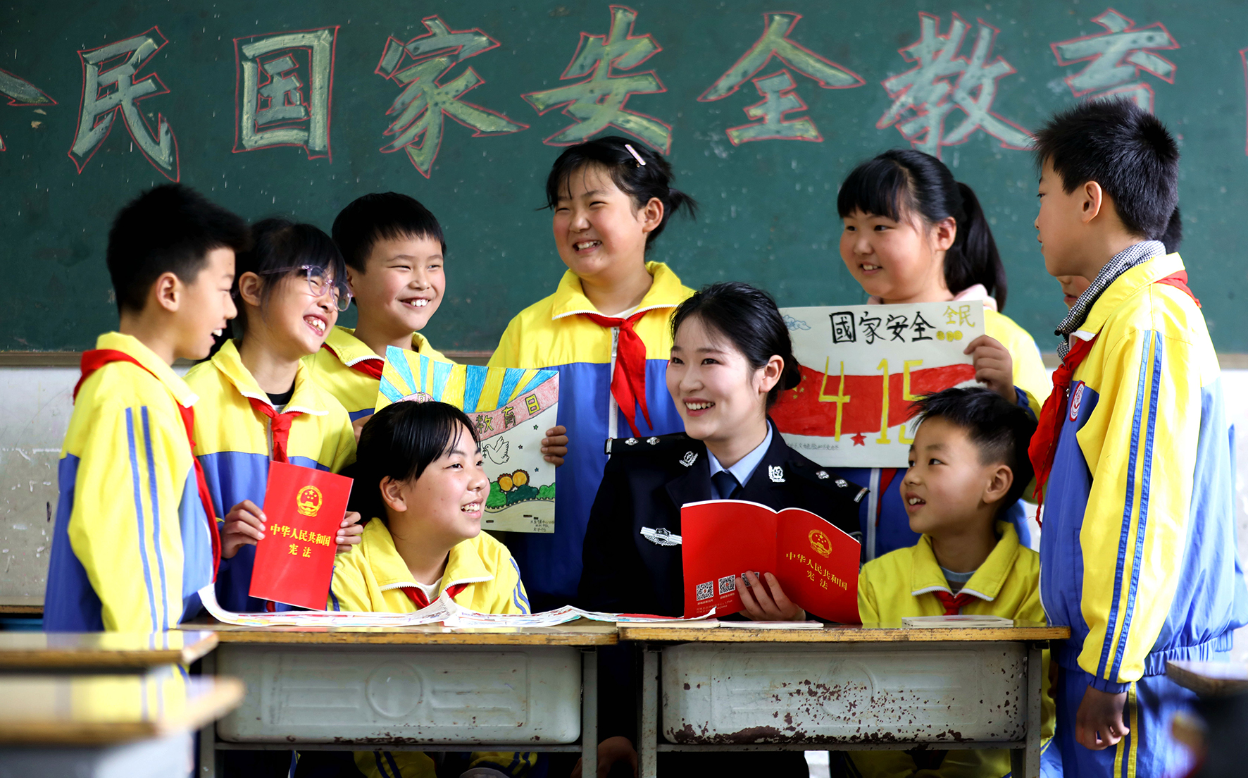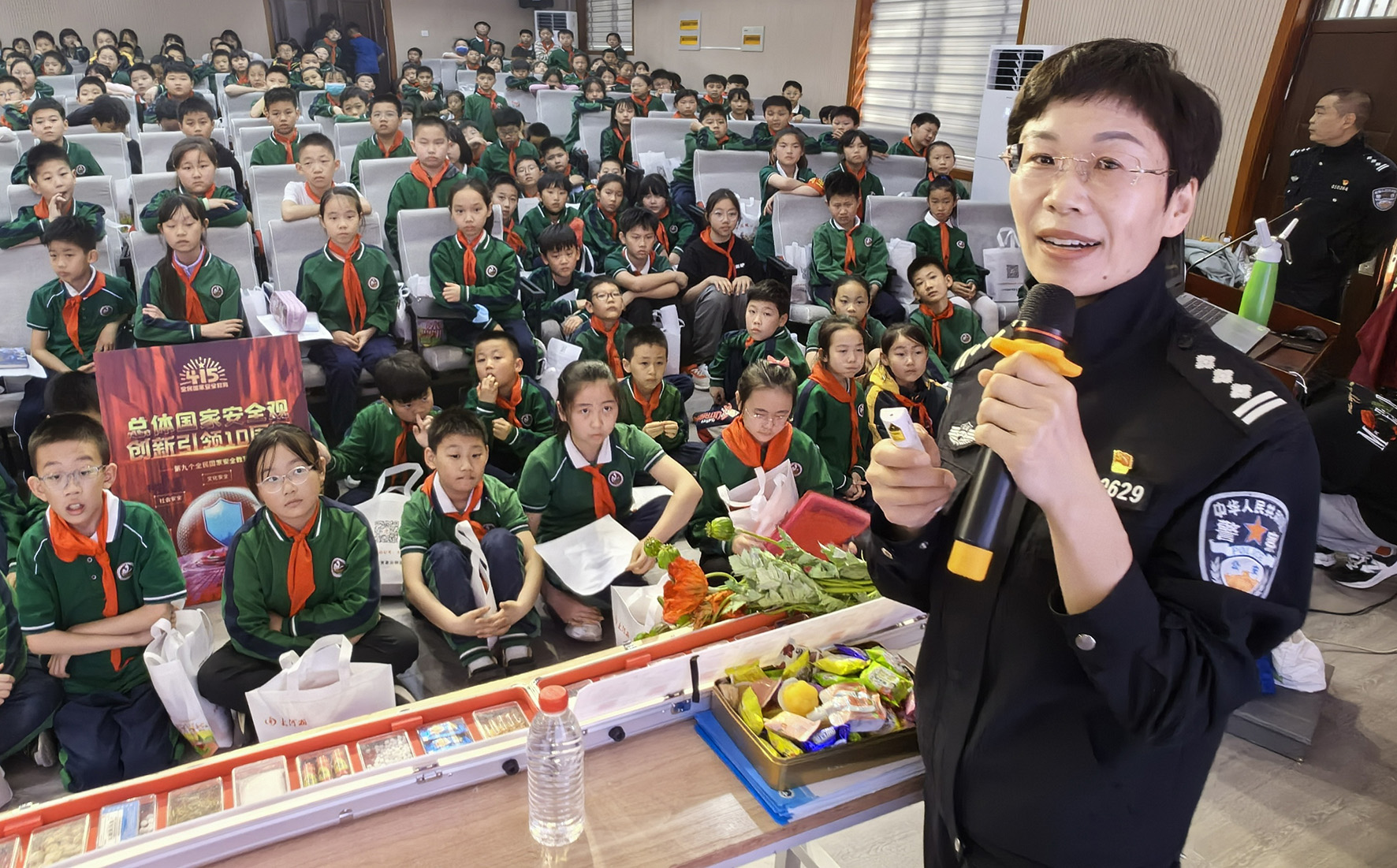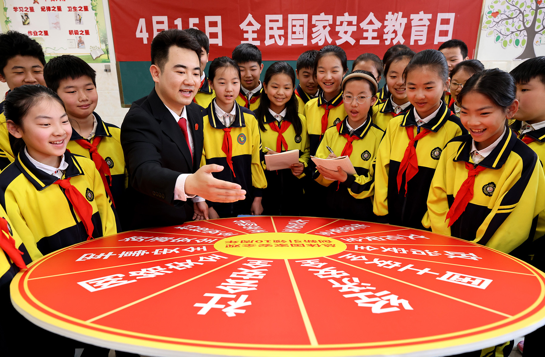 4月11日,河南省郑州市公安局金水分局组织民辅警来到纬五路第一小学开展“国家安全教育日”宣传教育互动活动。