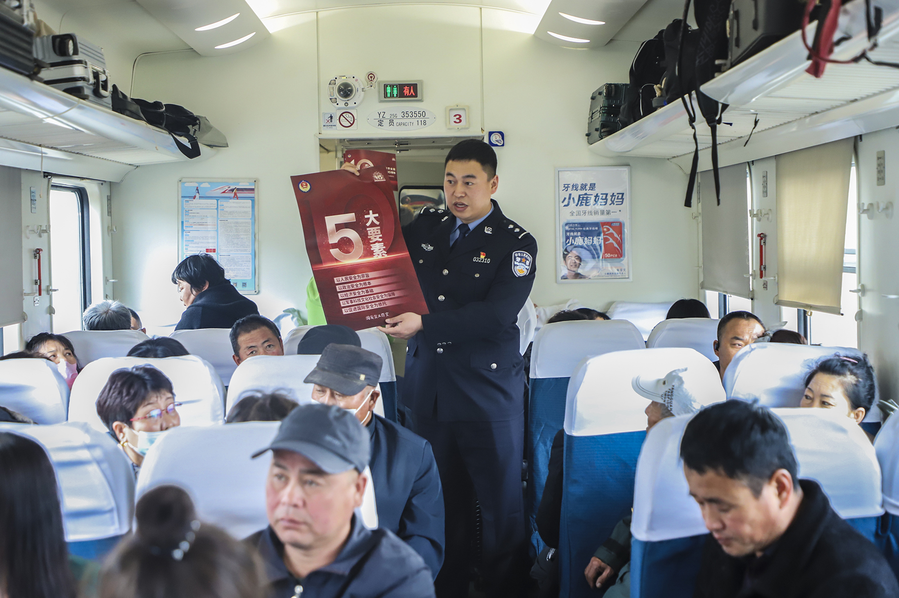 4月11日,沈阳铁路公安局沈阳公安处组织民警在列车上开展全民国家安全教育日普法宣传活动。