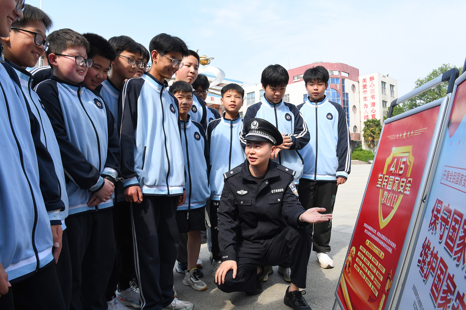 4月11日,安徽省含山县公安局环峰派出所组织民警走进校园开展“全民国家安全教育日”宣传活动。