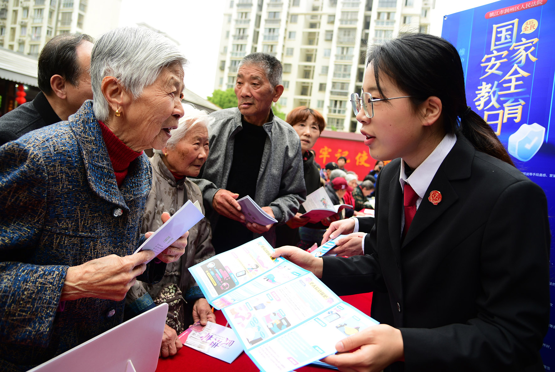 4月12日,江苏省镇江市润州区委政法委、法院、检察院、公安、司法、网信办等部门联合开展“全民国家安全教育日”主题宣传进社区活动。