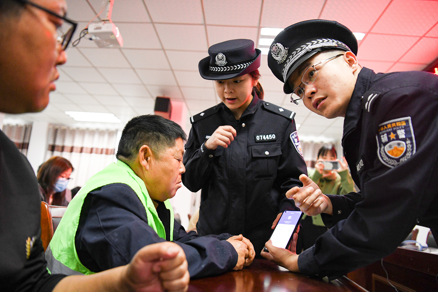 图为民警为群众演示下载国家反诈App的方法。