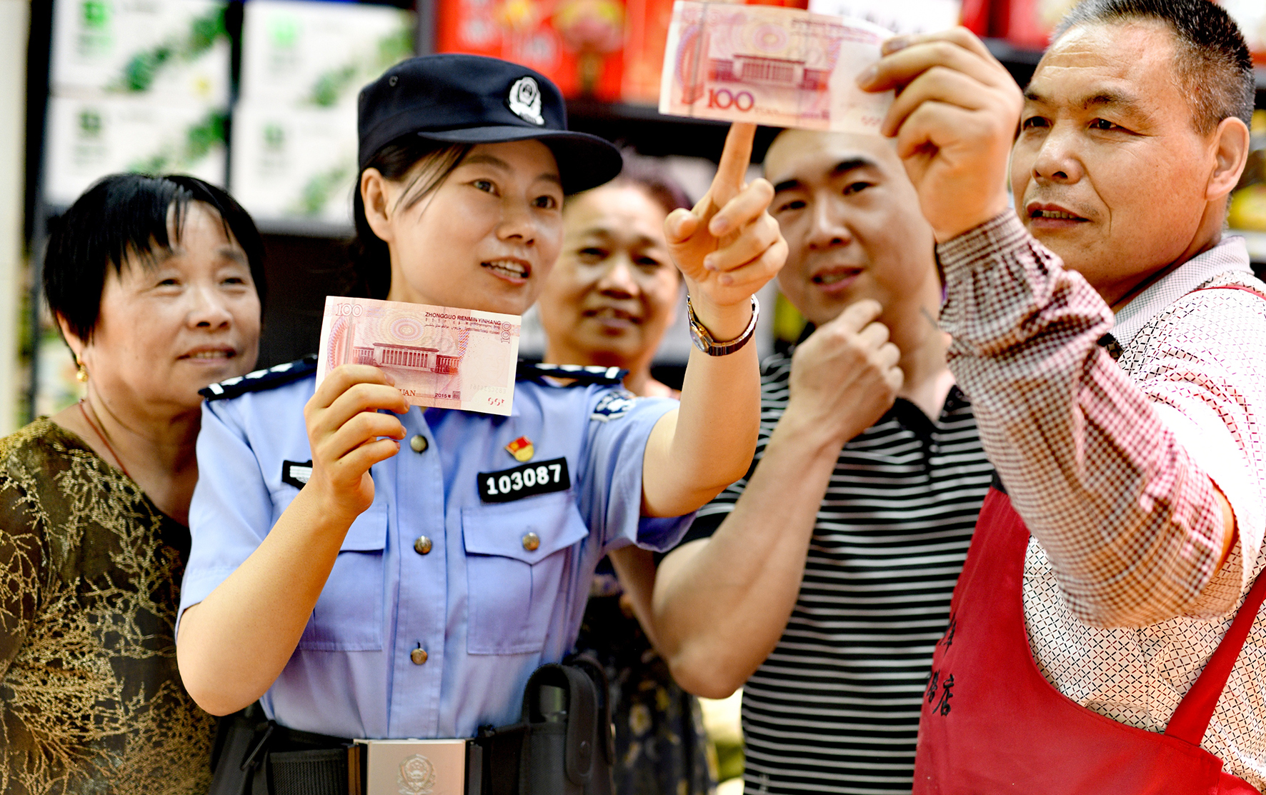 5月22日,河南省郑州市公安局金水分局民警在商超开展“识假币有妙招”宣传活动。
