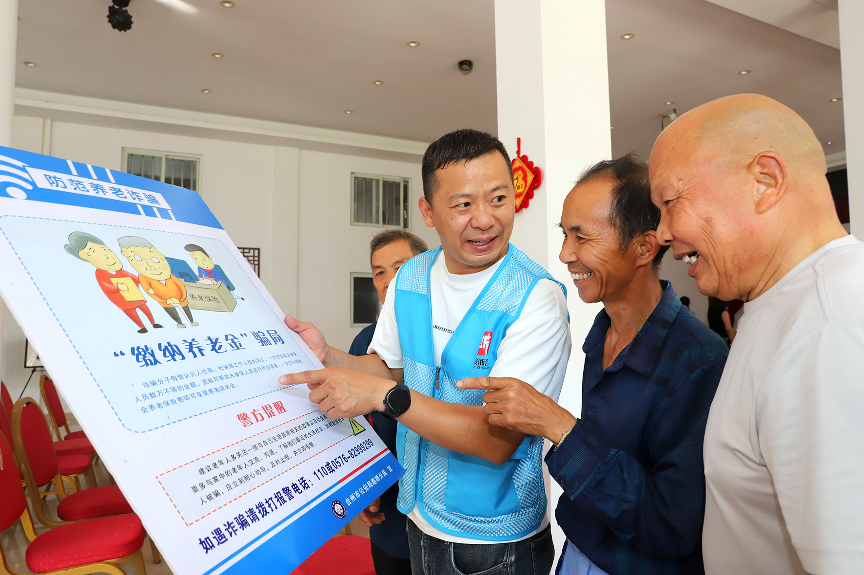 7月2日,浙江省台州市路桥区路北街道的网格员在向老人曝光不法分子常见的诈骗伎俩。