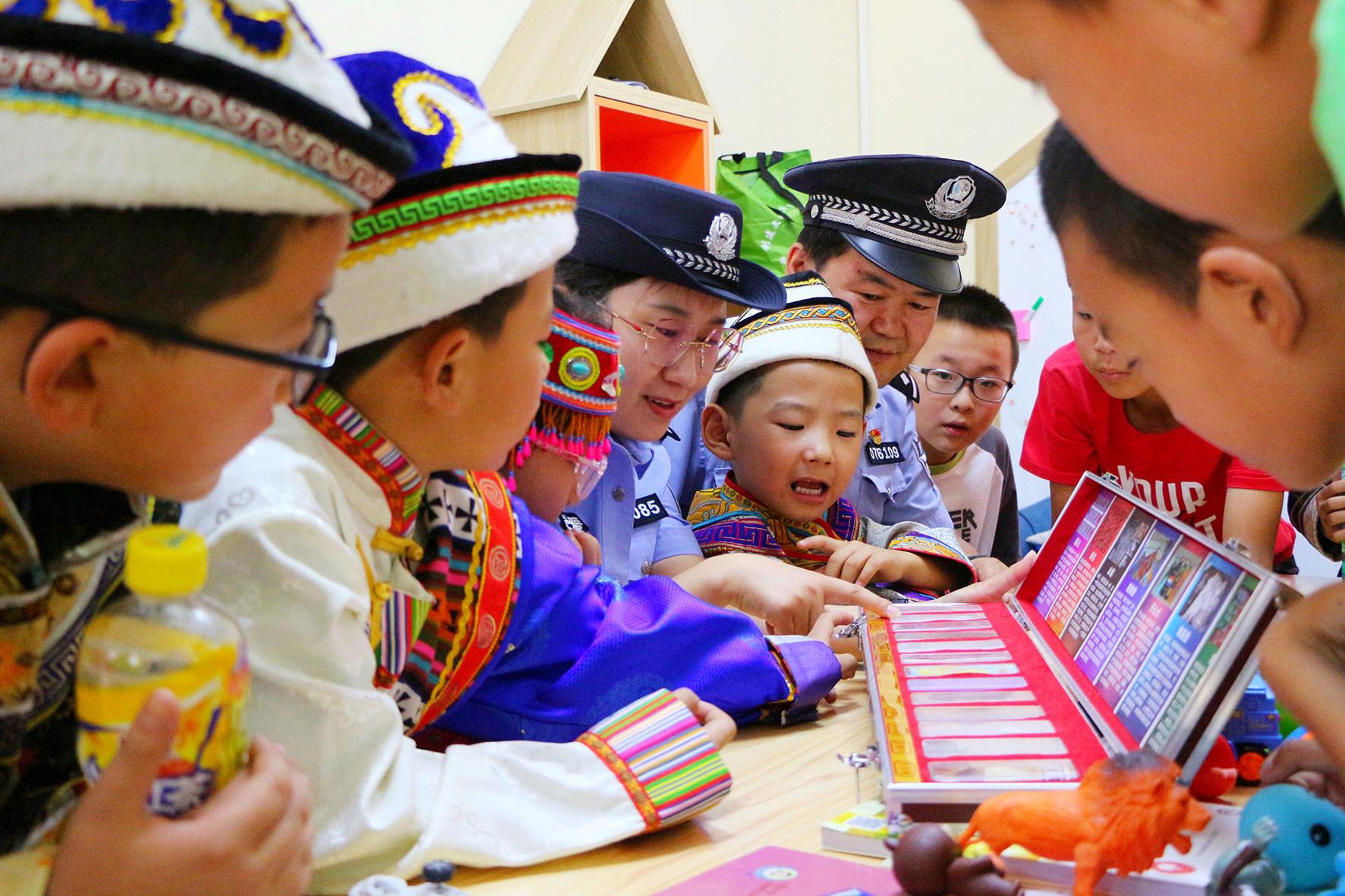 甘肃省肃南县公安局禁毒大队民警走进裕兴社区暑期爱心托管班开展禁毒宣传。