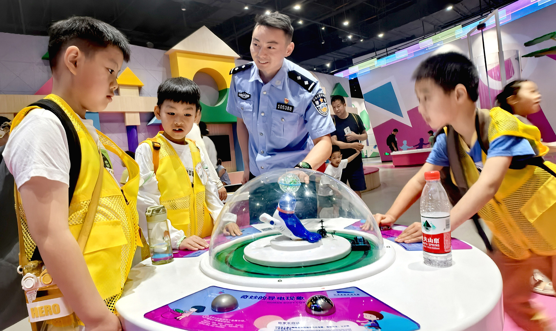 7月12日,河南省郑州市公安局金水分局暑假警营爱心托管班的孩子们来到河南省科技馆学习体验新科技。
