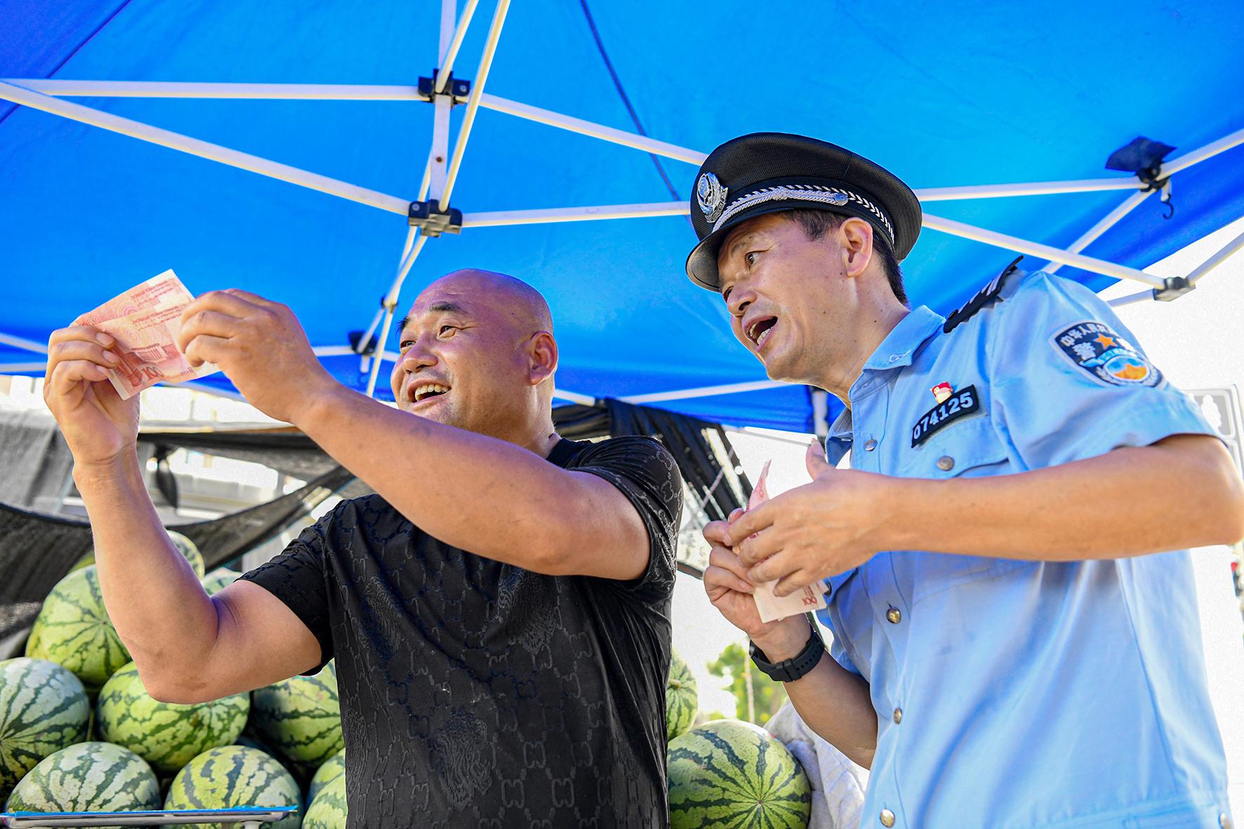 7月24日,安徽省马鞍山市含山县公安局环峰派出所联合经侦大队组织民警开展反假币宣传活动。