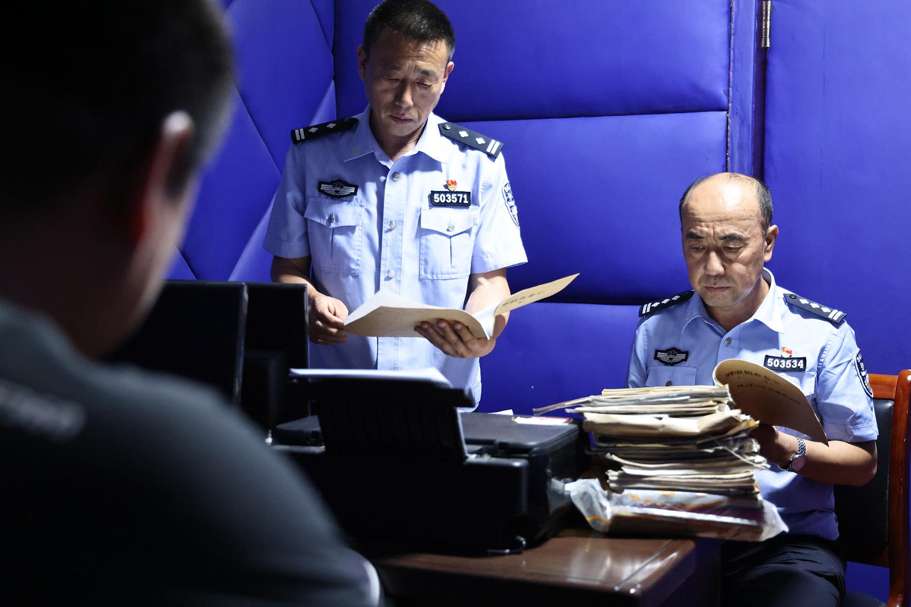 图为7月25日,办案民警固定证据,提审犯罪嫌疑人。