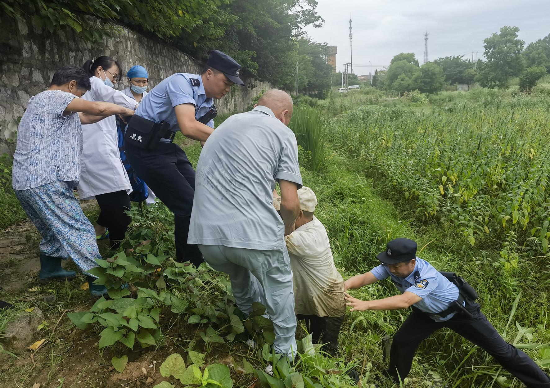 7月27日,安徽省巢湖市公安局半汤派出所接警称,一位老大爷因不慎滑倒在水沟里,动弹不得。民警第一时间赶到现场,与医护人员、热心村民一起将老人救出水沟送医。