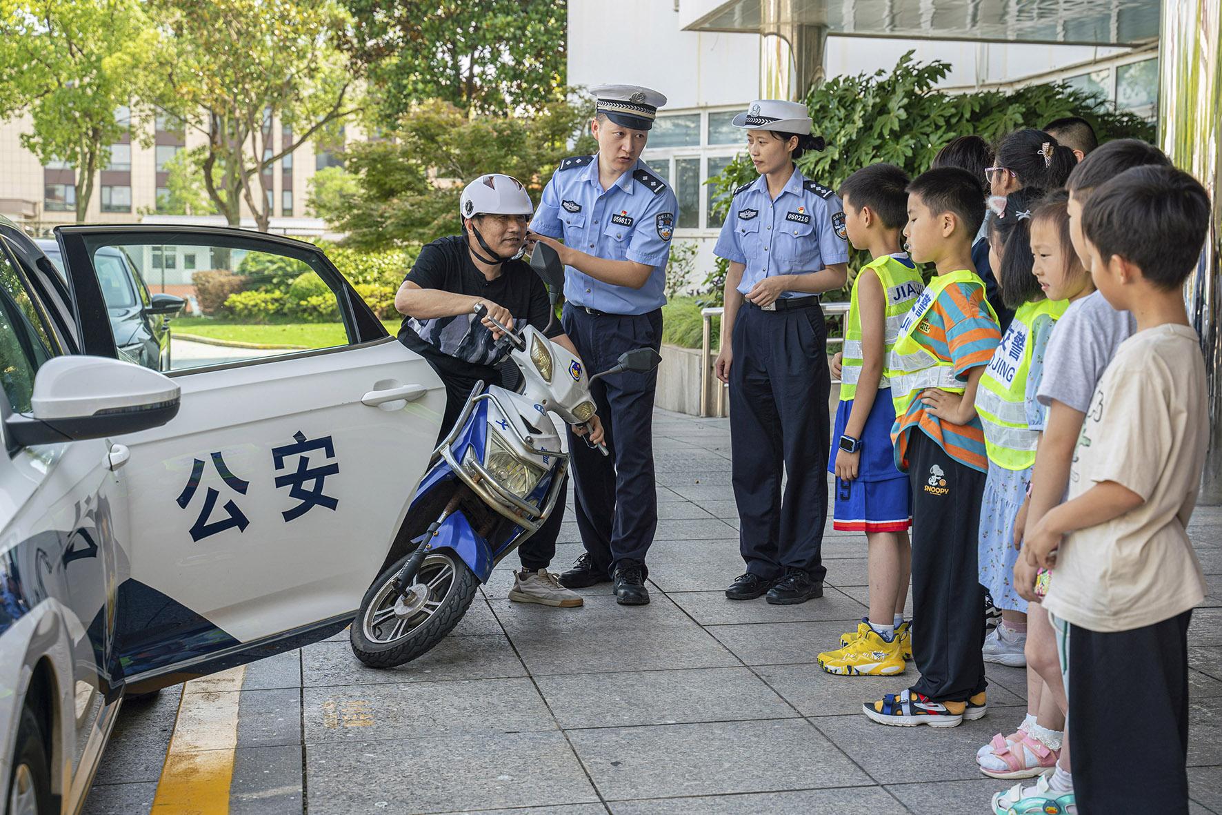 图为7月26日,崇明分局交警支队组织民警来到“安心暑托班”,为孩子们上了一堂生动的交通安全课。