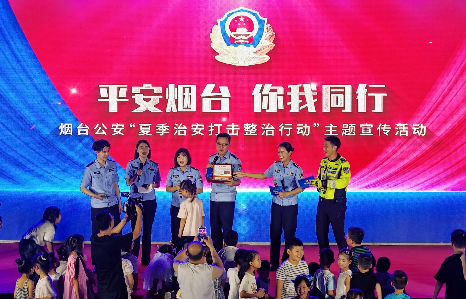 8月2日晚,山东省烟台市公安局在市民广场举办“平安烟台 你我同行”烟台公安“夏季治安打击整治行动” 主题宣传活动,民警通过现场宣讲、防范剧场、游戏互动等多种形式,向群众宣传道路交通、防非法集资、禁毒、反电诈等知识,进一步提升群众的安全防范意识。