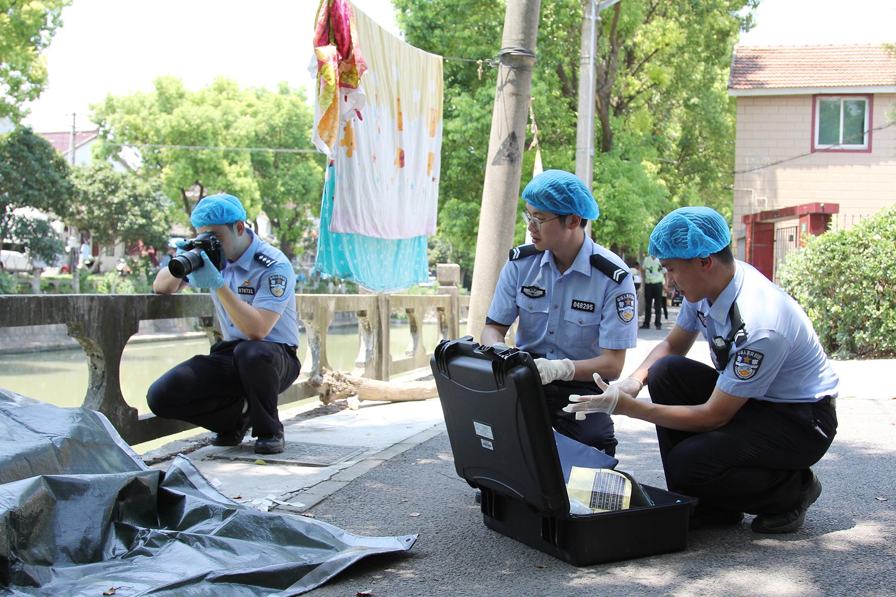 8月4日,上海市公安局嘉定分局刑科所民警与辖区派出所民警冒着摄氏40℃高温在案发地进行现场勘察。