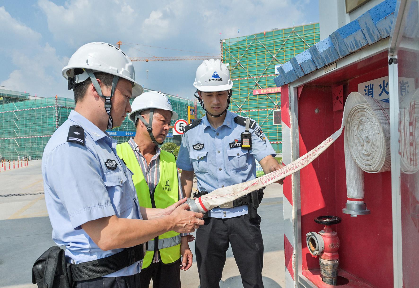 图为 8月6日,壶山派出所 “项目警长”在重点项目施工现场开展安全检查,并为高温下作业的建设者送上防暑药品。