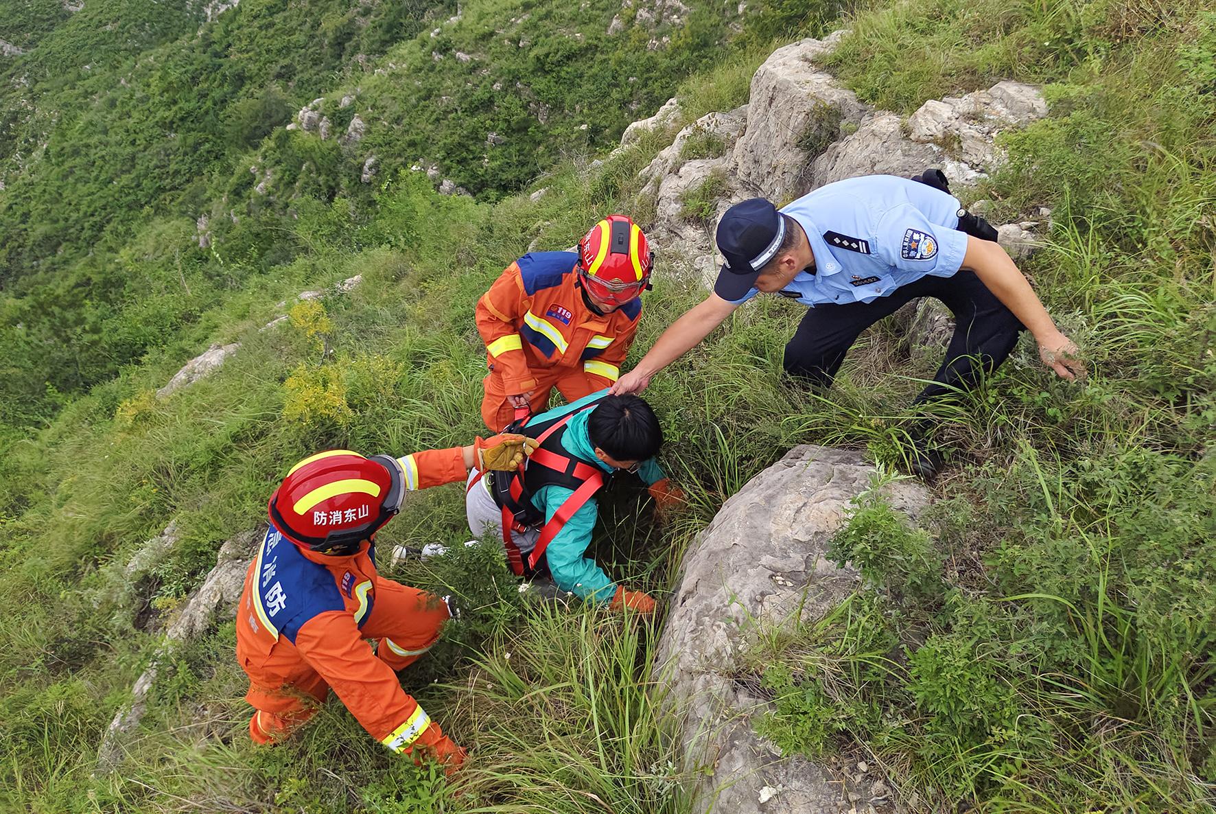 9月2日11时,山东省济南市公安局市中区分局兴隆派出所接到报警称,一女子在矿村黑裕顶山高100余米的悬崖下被困。了解情况后,民警联合领秀城消防救援站队员立即赶往现场,经过三个半小时努力,终于将其转移至安全地带。