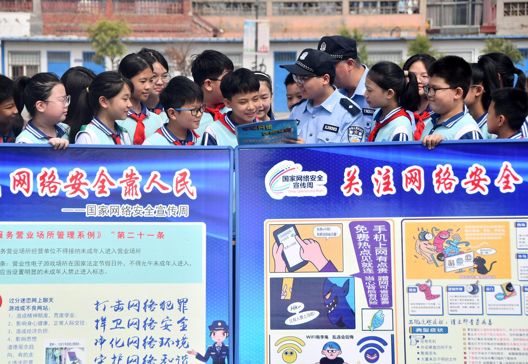9月9日,河北省邯郸市永年区公安局民警来到第二实验学校,向学生们讲解网络安全知识。