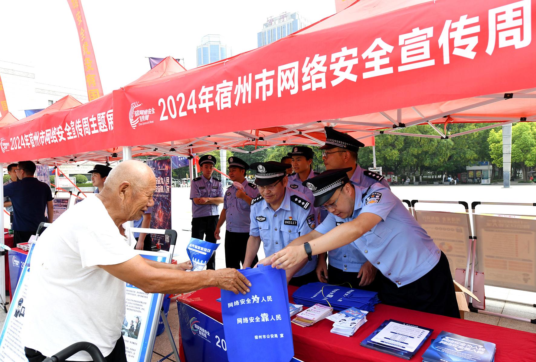 9月9日,安徽省宿州市公安局网安支队民警向市民发放宣传材料并讲解网络安全常识。当日,2024年“国家网络安全宣传周”在全国各地同时启动。