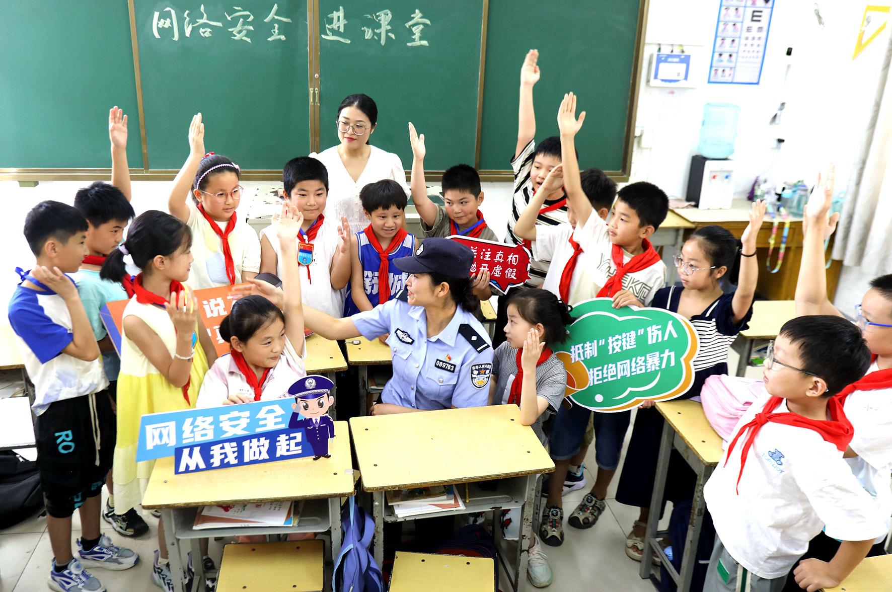 9月9日,安徽省舒城县公安局网监大队联合千人桥派出所走进辖区鲍桥小学课堂,开展“网络安全从我做起”宣传活动。