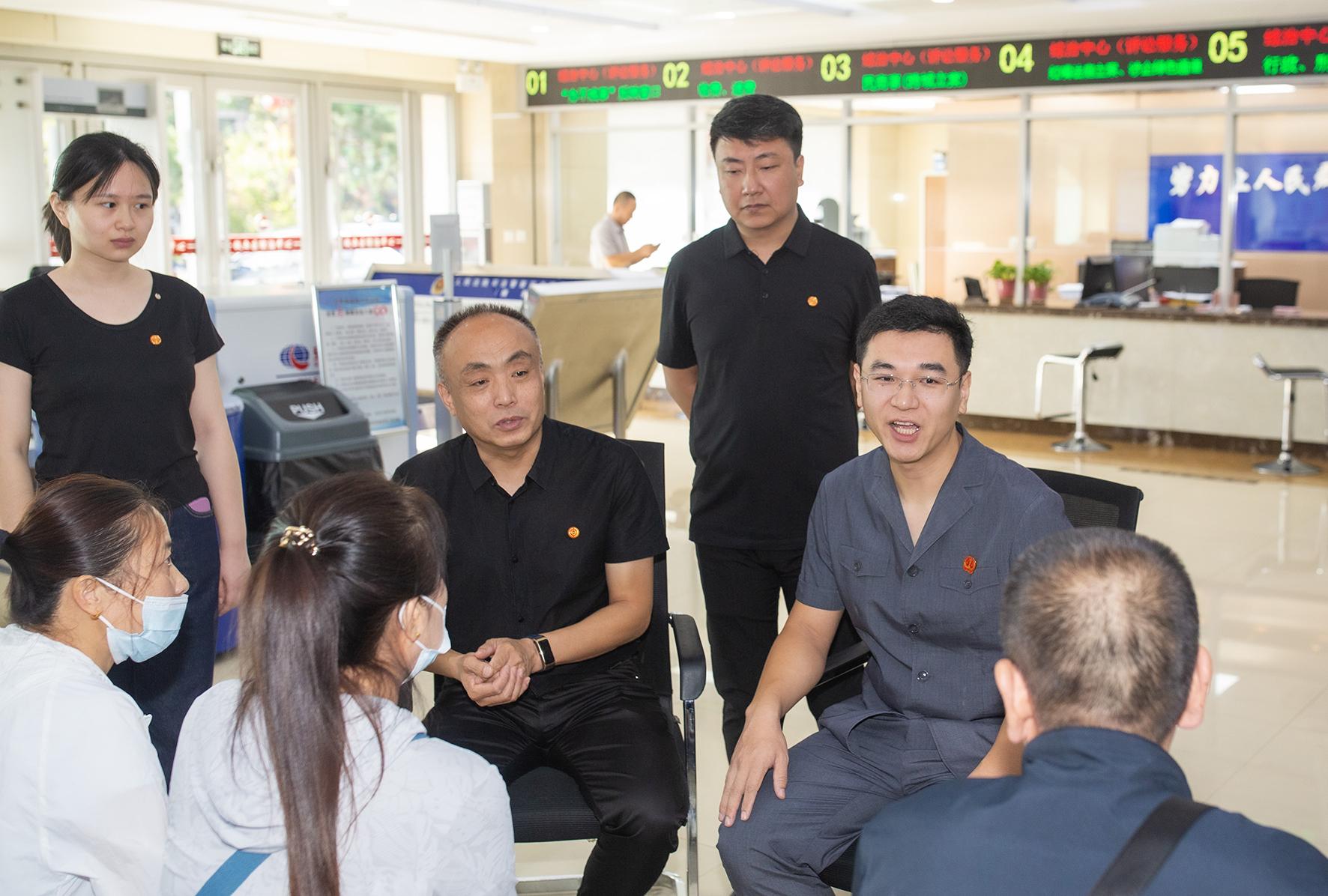 图为9月10日,法官与工会工作人员联合调解一起工伤案件。