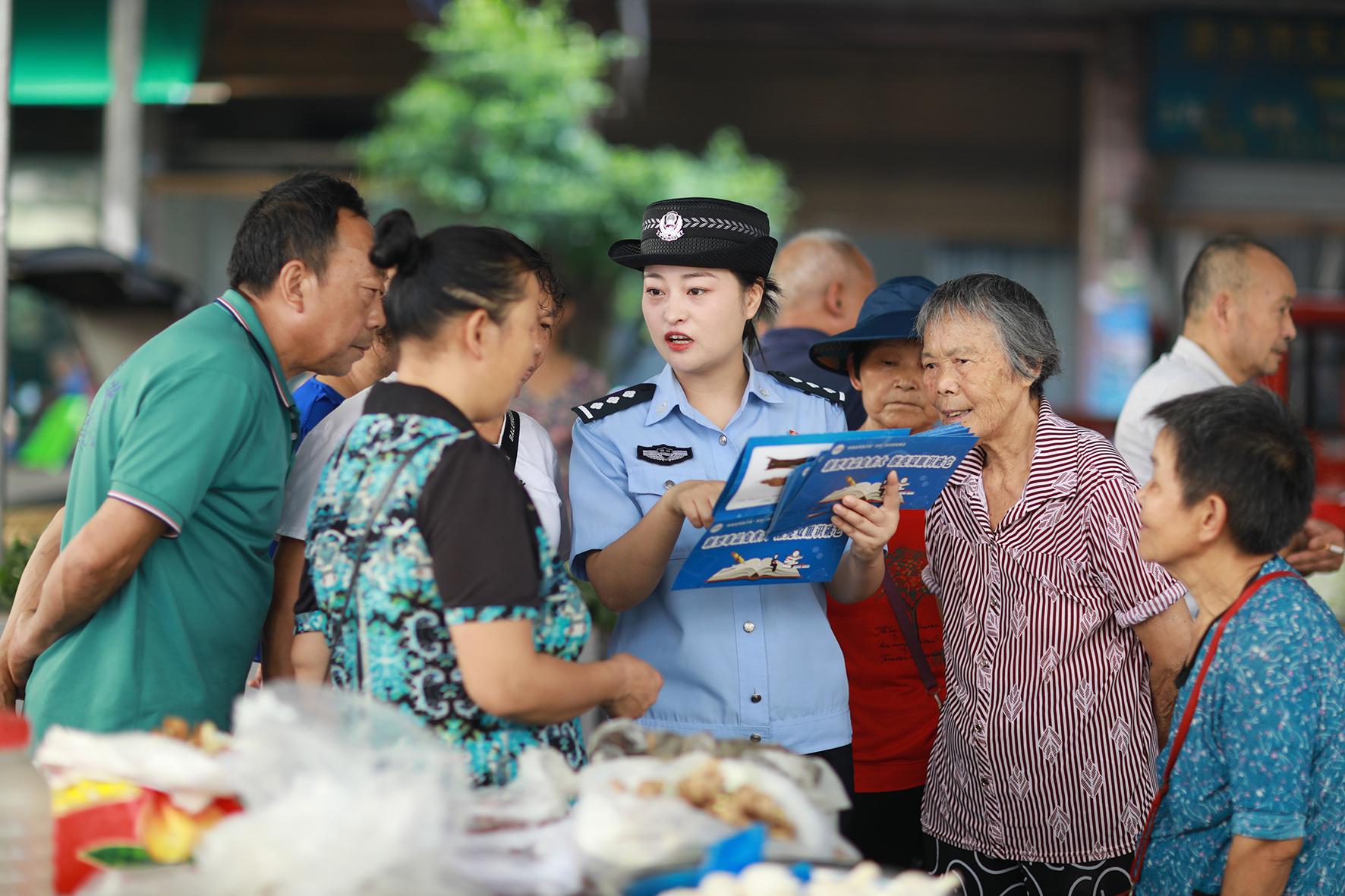 连日来,贵州省赤水市公安局联合镇、村(社区)党员干部来到乡镇菜市场、超市、茶馆等人流密集地,向群众普及防范养老诈骗、禁毒、食药安全等方面的法律法规,提高群众防范意识和依法维护自身合法权益的意识。