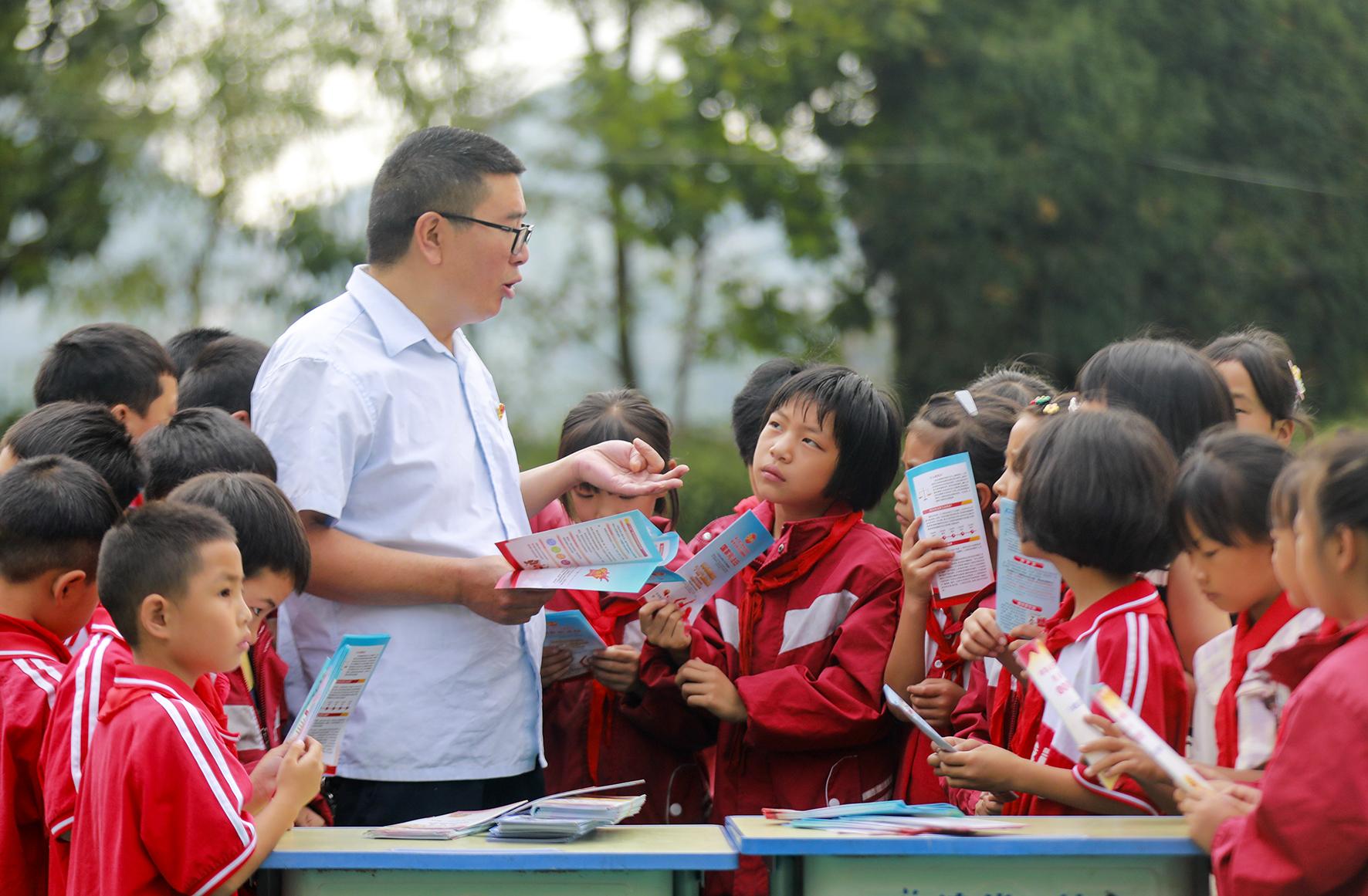 9月18日,贵州省黔西市司法局司法工作者在偏远的雨朵镇龙场村龙场小学,给孩子们讲解防范网络谣言、防校园欺凌、反诈、禁毒等知识。