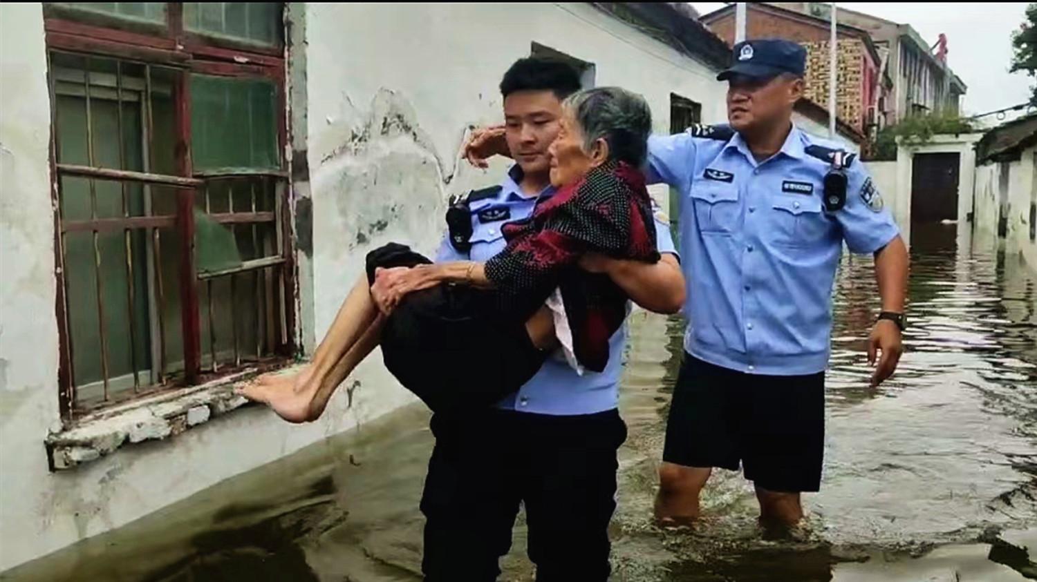 图为9月21日,民警辅警正在救助被困群众。