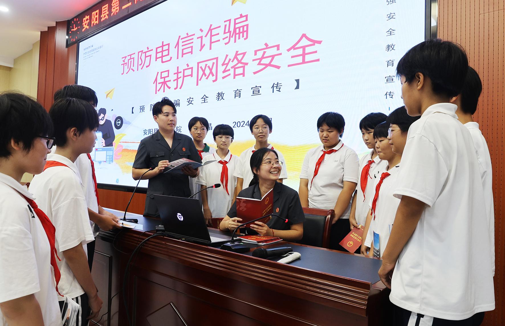 9月20日,河南省安阳县人民法院组织法官深入第二高级中学附属初中开展了以“预防电信诈骗、保护网络安全”为主题的普法宣传活动。