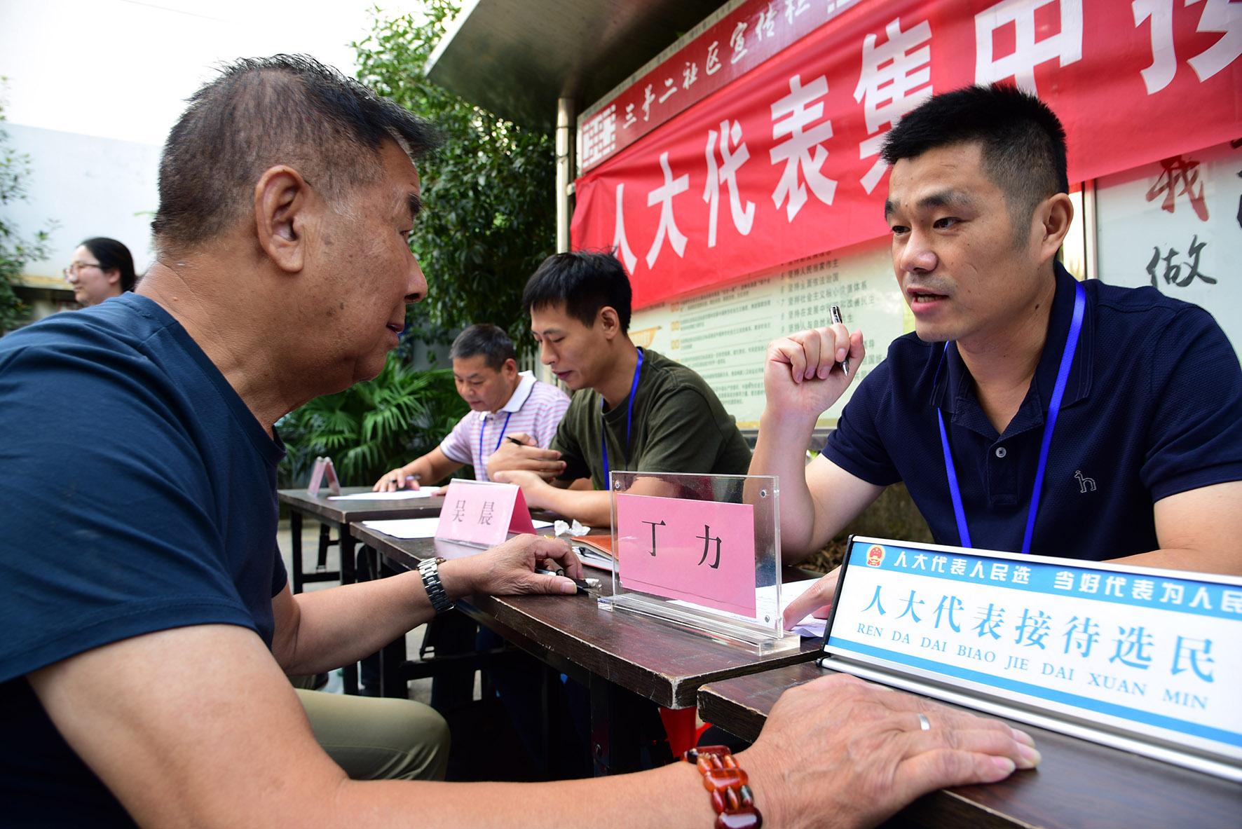 9月24日,在江苏省镇江市和平路街道三茅宫第二社区,人大代表在听取选民的意见和建议。当日,镇江市润州区和平路街道人大工委组织区人大代表走进三茅宫第二社区接待选民,面对面听取群众对社会治理、民生保障、老小区改造、文化资源配置等方面的意见和建议,倾听民声民意,为民排忧解难。