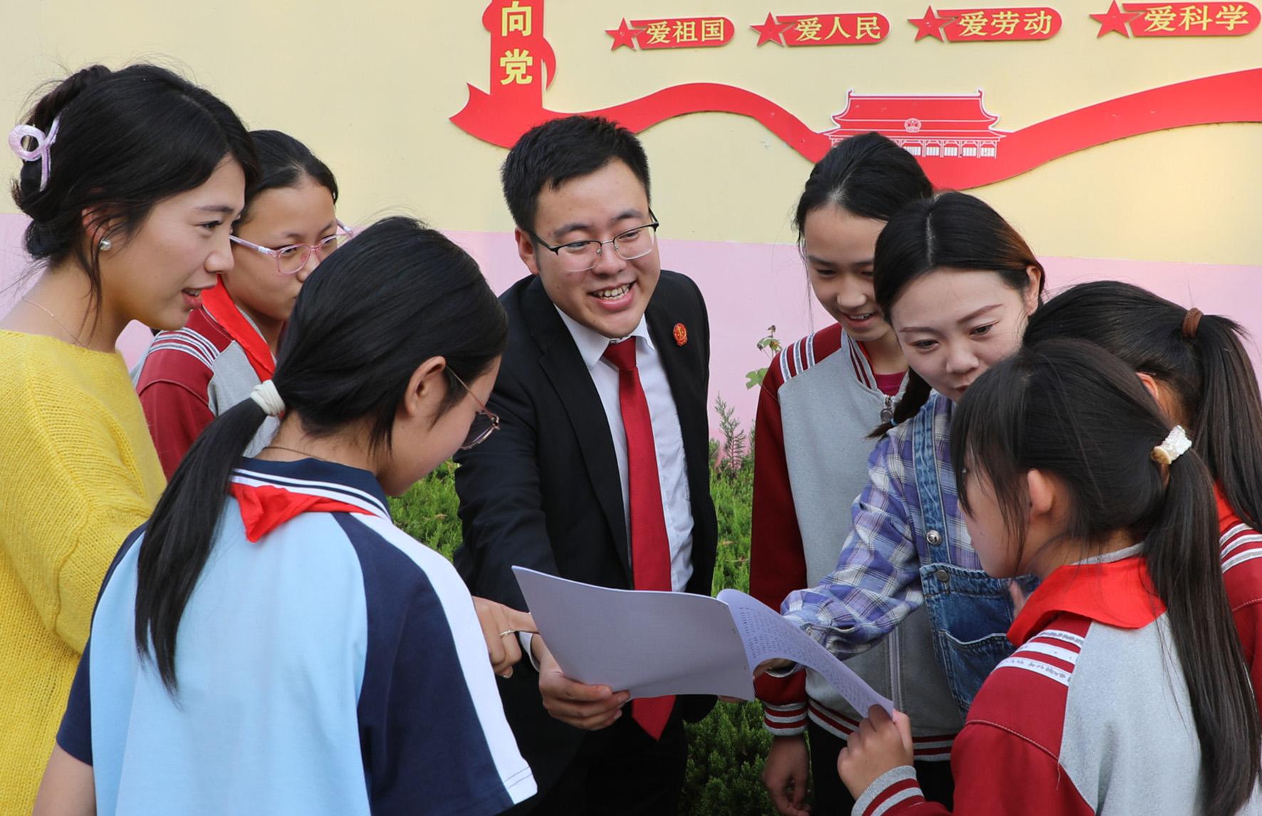 图为10月9日,道口人民法庭干警给同学们答疑解惑。