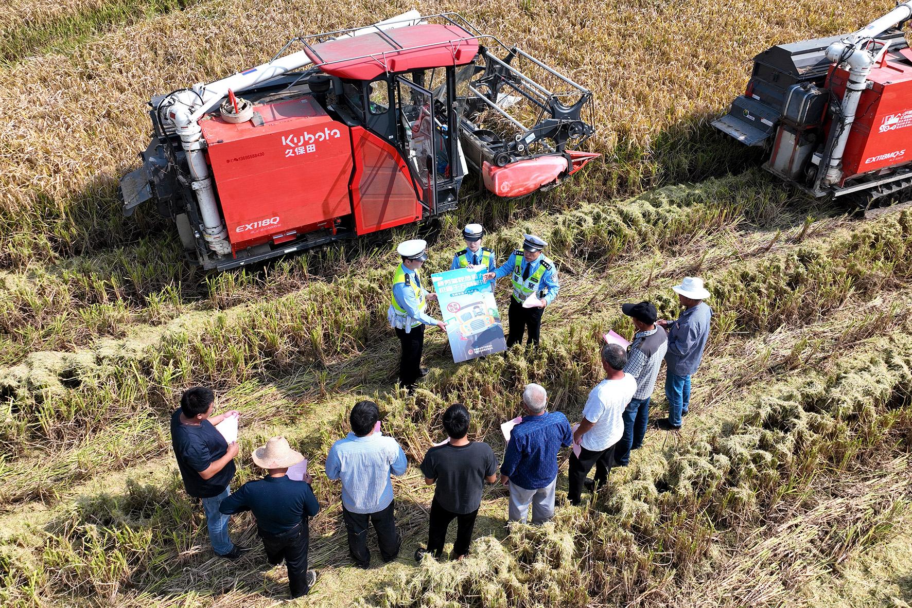 10月11日,安徽省芜湖市公安局交警支队高速三大队抓住农村秋收季节特点,组织民警深入高速公路沿边田间地头开展交通安全宣传,提高群众交通安全意识。