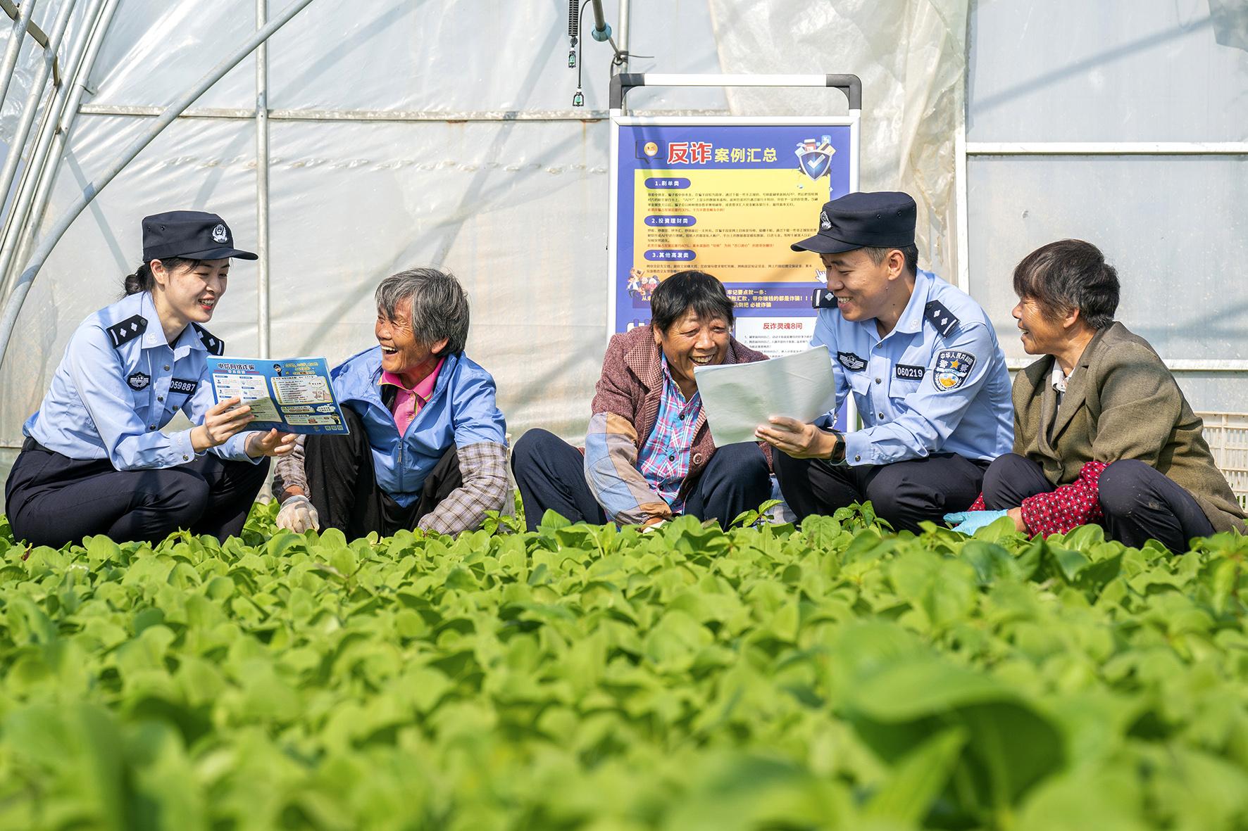 10月12日,上海市公安局崇明分局港西派出所民警来到蔬菜基地,向正在辛勤劳作的农户们开展防范电信网络诈骗宣传和助农服务,全力护航乡村经济。